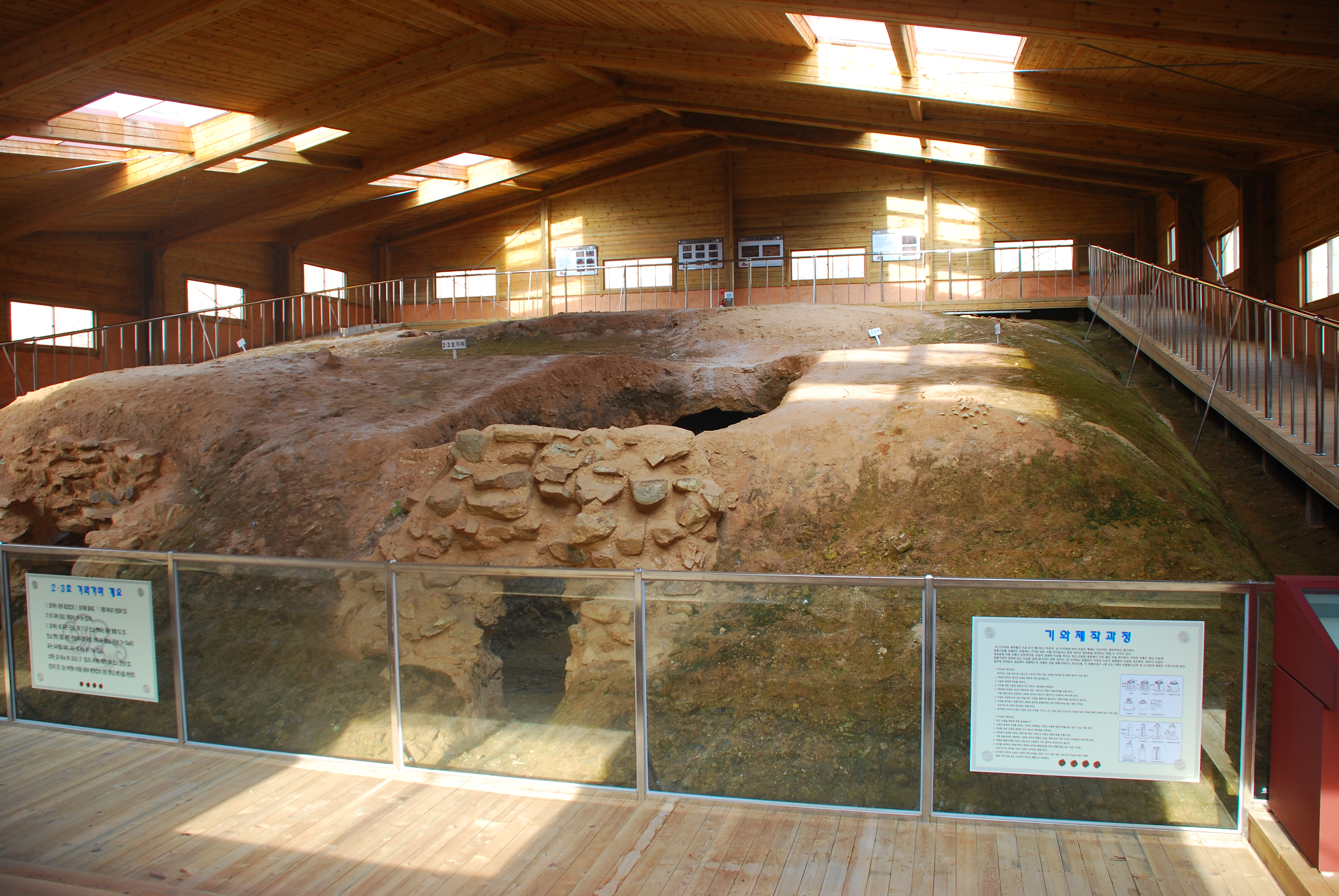 2004년 발견하여 2005년 발굴, 현재와 같이 지븡을 덮어 보존하고 있는 모양이다. 문이 열려 있어 들어 가 보았는데 왠지 썰렁하다.