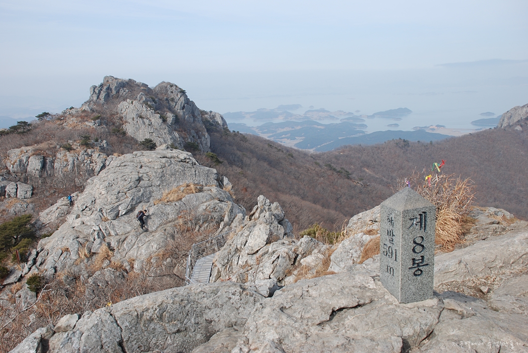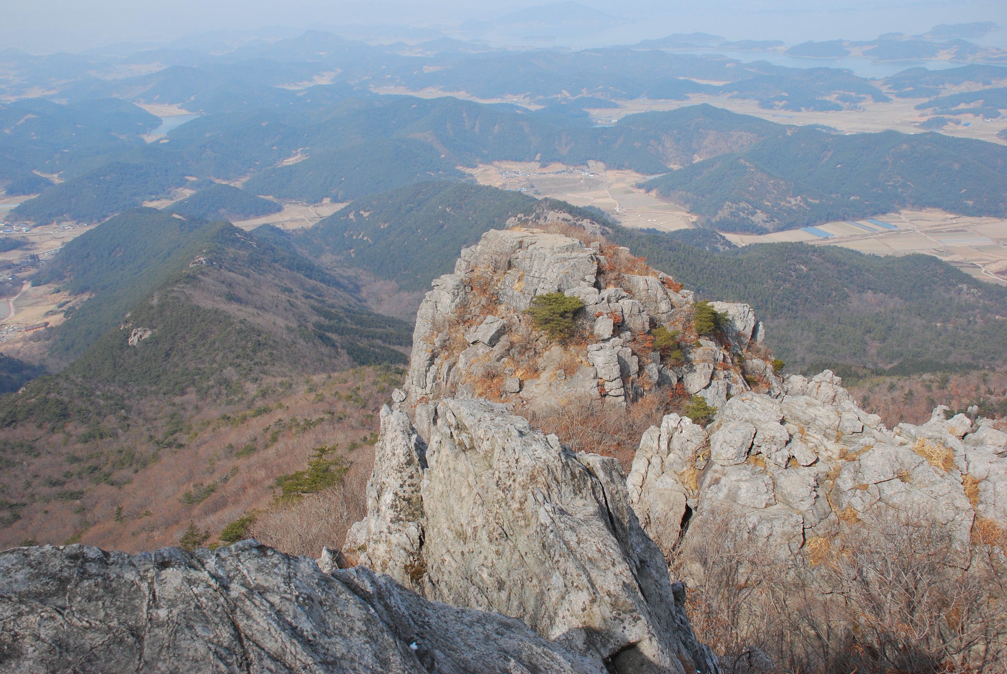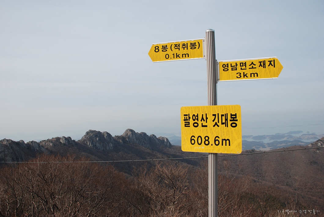 팔영산은 전남 고흥반도의 동쪽 끝에 위치한 암봉으로 이뤄진 멋진 산입니다. 최고봉인 깃대봉의 해발 높이가 609m입니다. 600여m 밖에 안되니 새피하게 보일지 모르지만 해안 가까이 있는 산들은 낮은 고도에서 시작하기 때문에 나름대로 높이를 가지고 있다 봐야 됩니다. 참고로 합천의 가야산 높이가 1,430m인데 이 중 차로 슝..하고 오르는 고도가 약 660m 입니다. 그러니 나머지 770m만 걸어서 올라가는 것입니다. 그러나 전라도 쪽 바다 가까이 있는 산들이나 섬에 있는 산들은 최초 산행 고도가 낮기 때문에 그만큼 만만치 않다는 결론입니다.