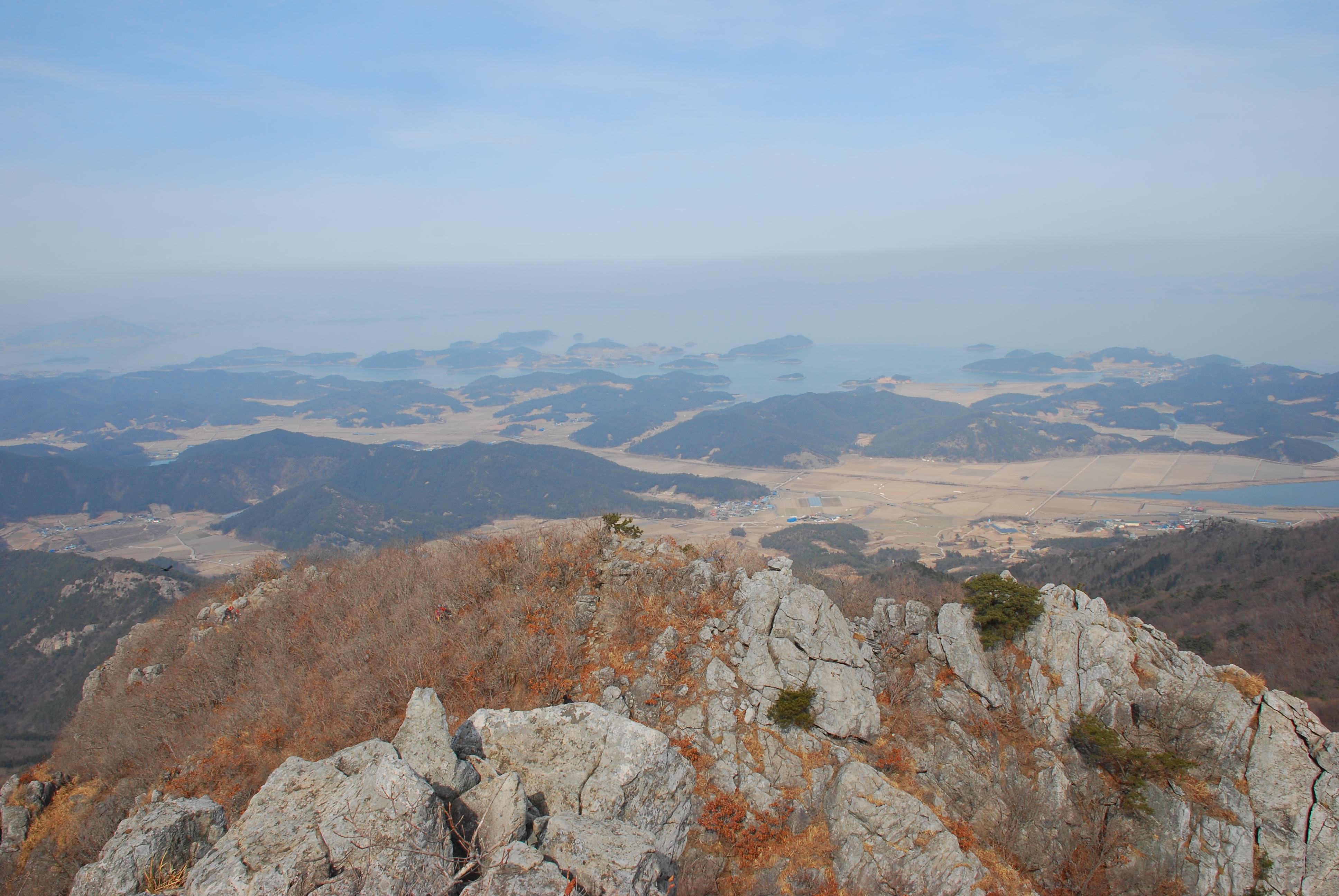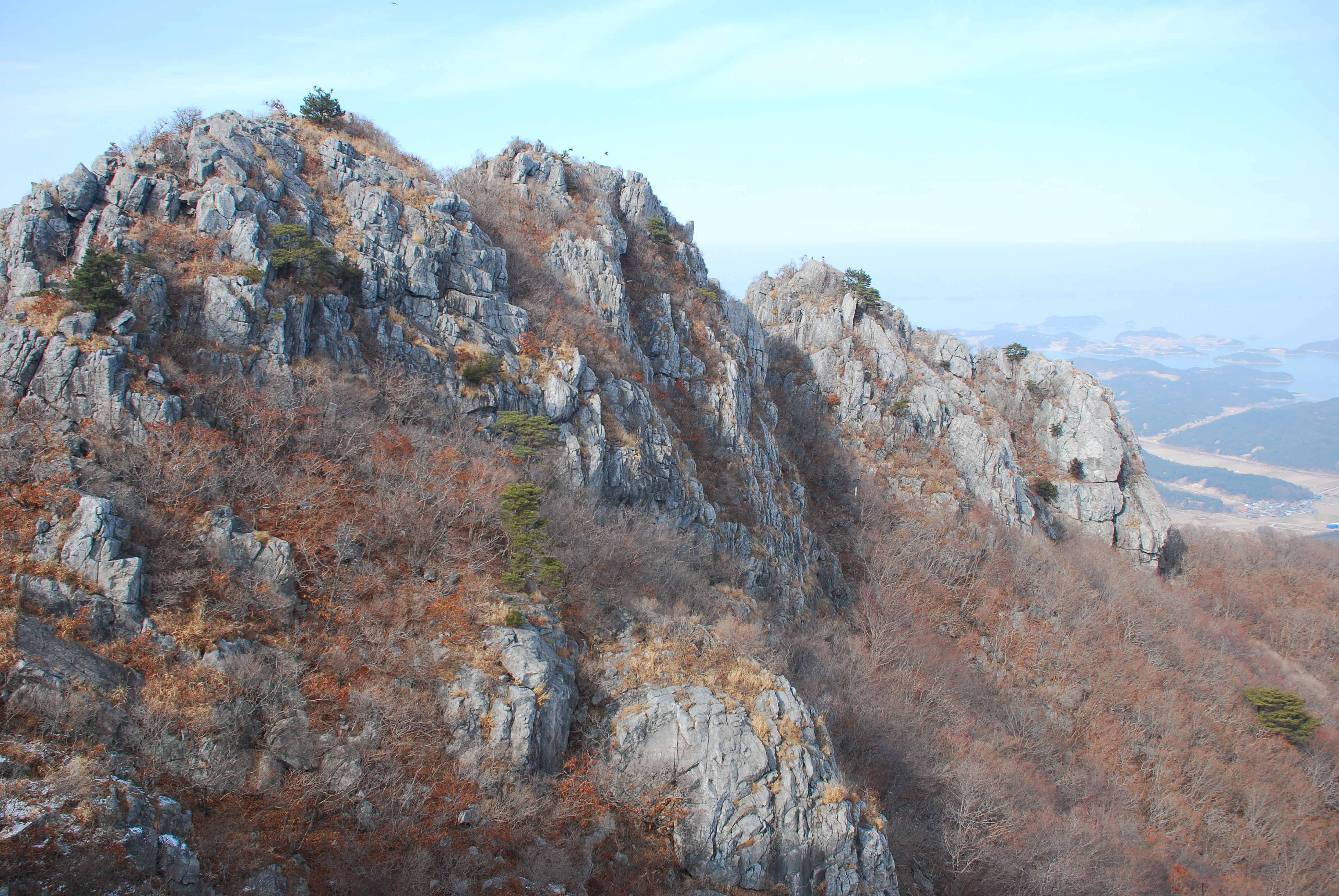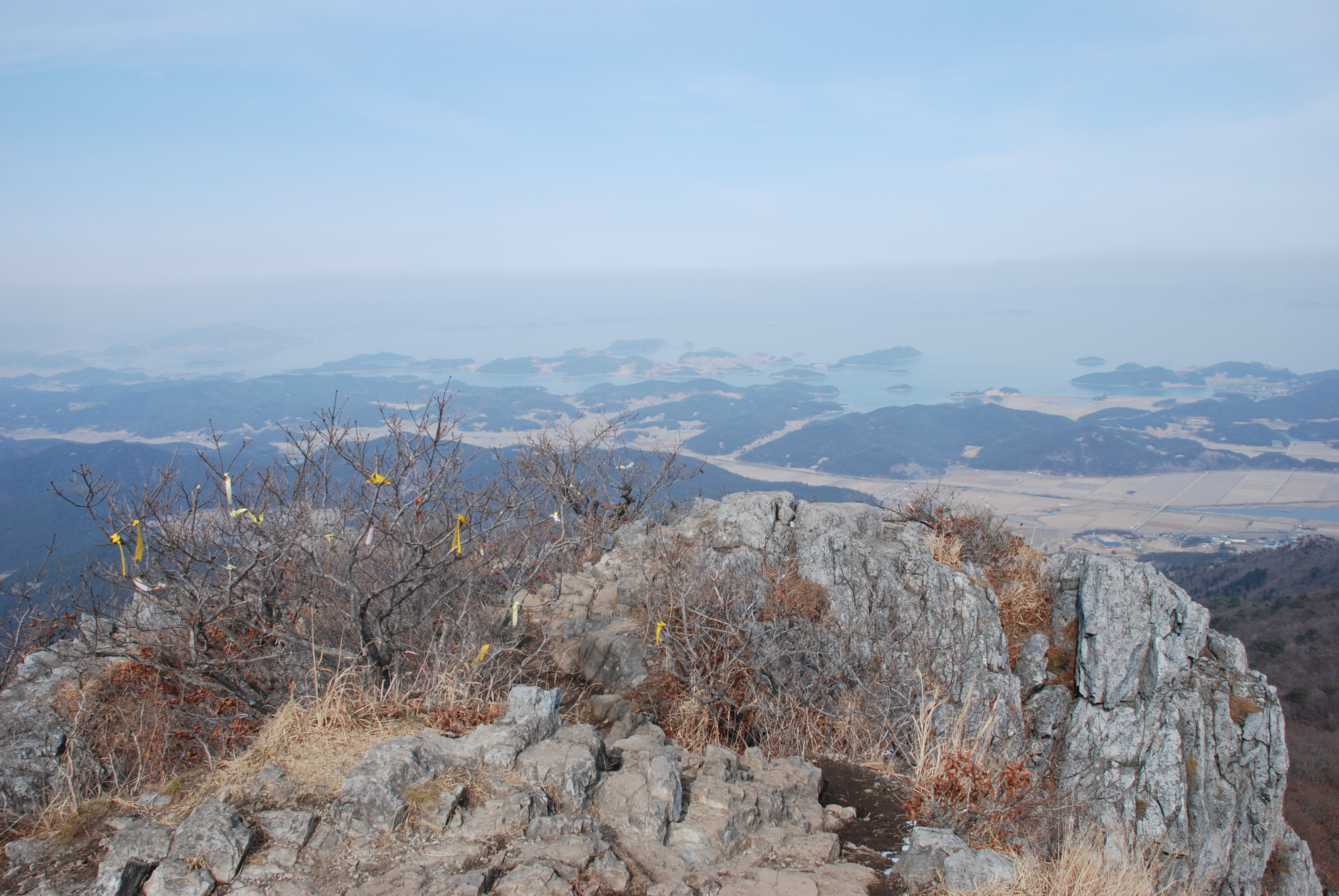 팔영산은 전남 고흥반도의 동쪽 끝에 위치한 암봉으로 이뤄진 멋진 산입니다. 최고봉인 깃대봉의 해발 높이가 609m입니다. 600여m 밖에 안되니 새피하게 보일지 모르지만 해안 가까이 있는 산들은 낮은 고도에서 시작하기 때문에 나름대로 높이를 가지고 있다 봐야 됩니다. 참고로 합천의 가야산 높이가 1,430m인데 이 중 차로 슝..하고 오르는 고도가 약 660m 입니다. 그러니 나머지 770m만 걸어서 올라가는 것입니다. 그러나 전라도 쪽 바다 가까이 있는 산들이나 섬에 있는 산들은 최초 산행 고도가 낮기 때문에 그만큼 만만치 않다는 결론입니다.