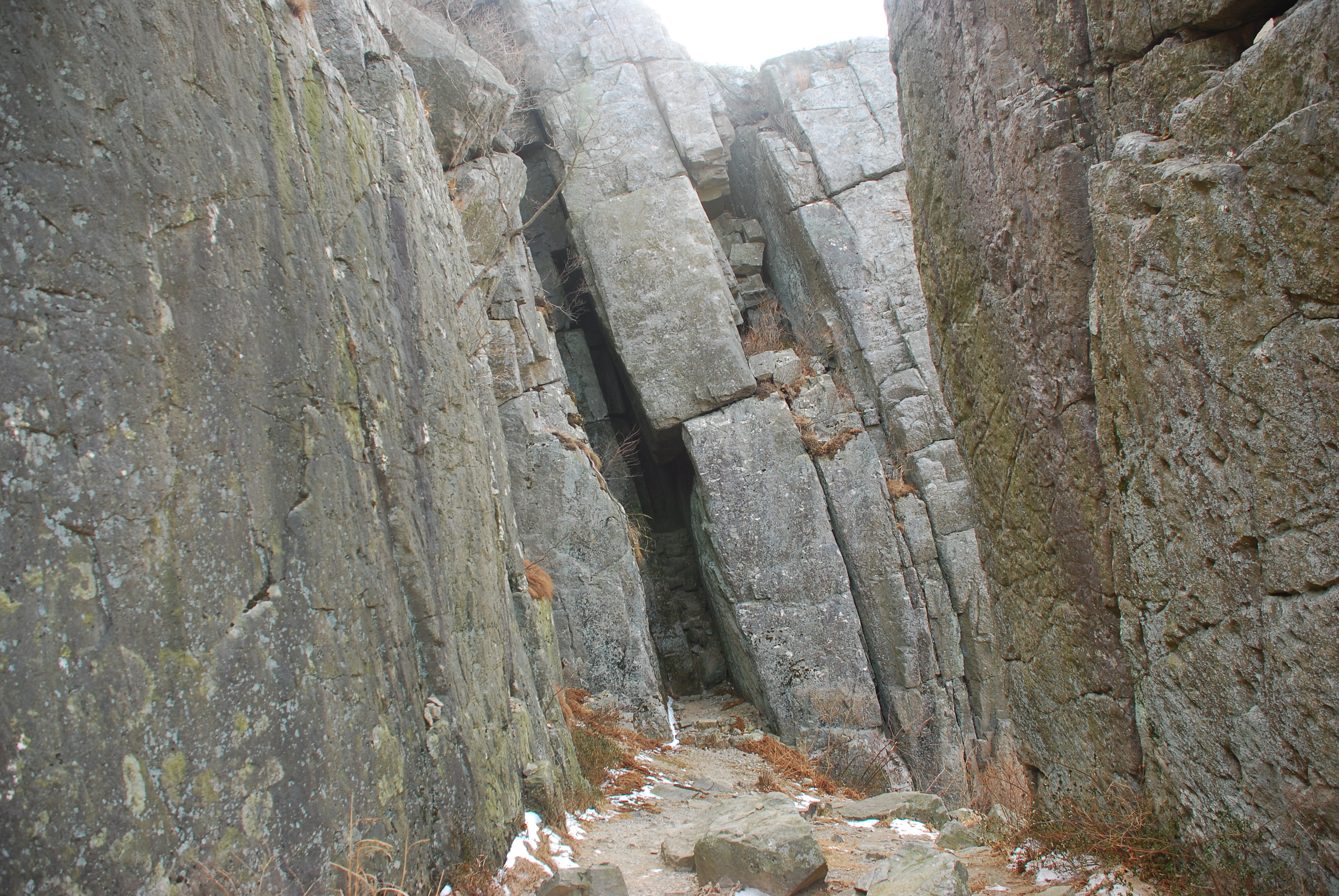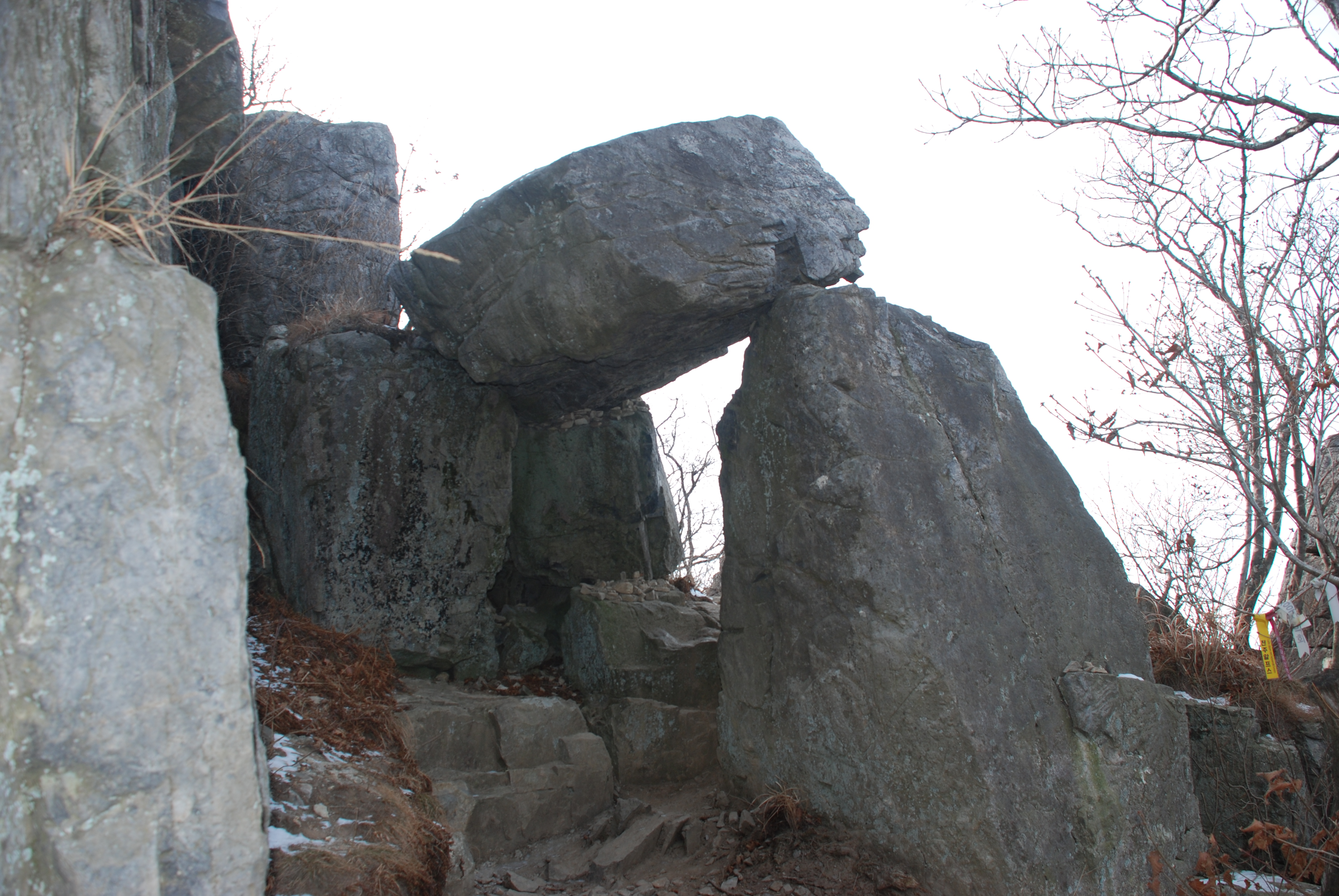 커다란 바위가 얹혀있는 암문. 어떻게 산 위에 이런 형태가 생길 수 있을까 신가해 하며 통과..