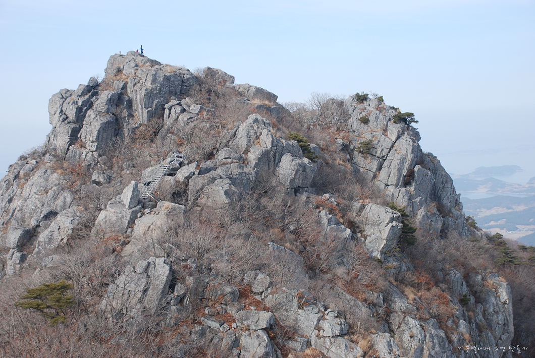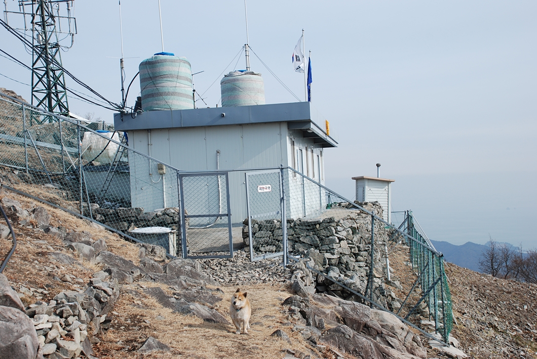 팔영산의 여덟 봉우리가 한눈에 보인다. 정상에는 진돗개 한마리와 경찰이 거주하는 초소 건물이 있다.
