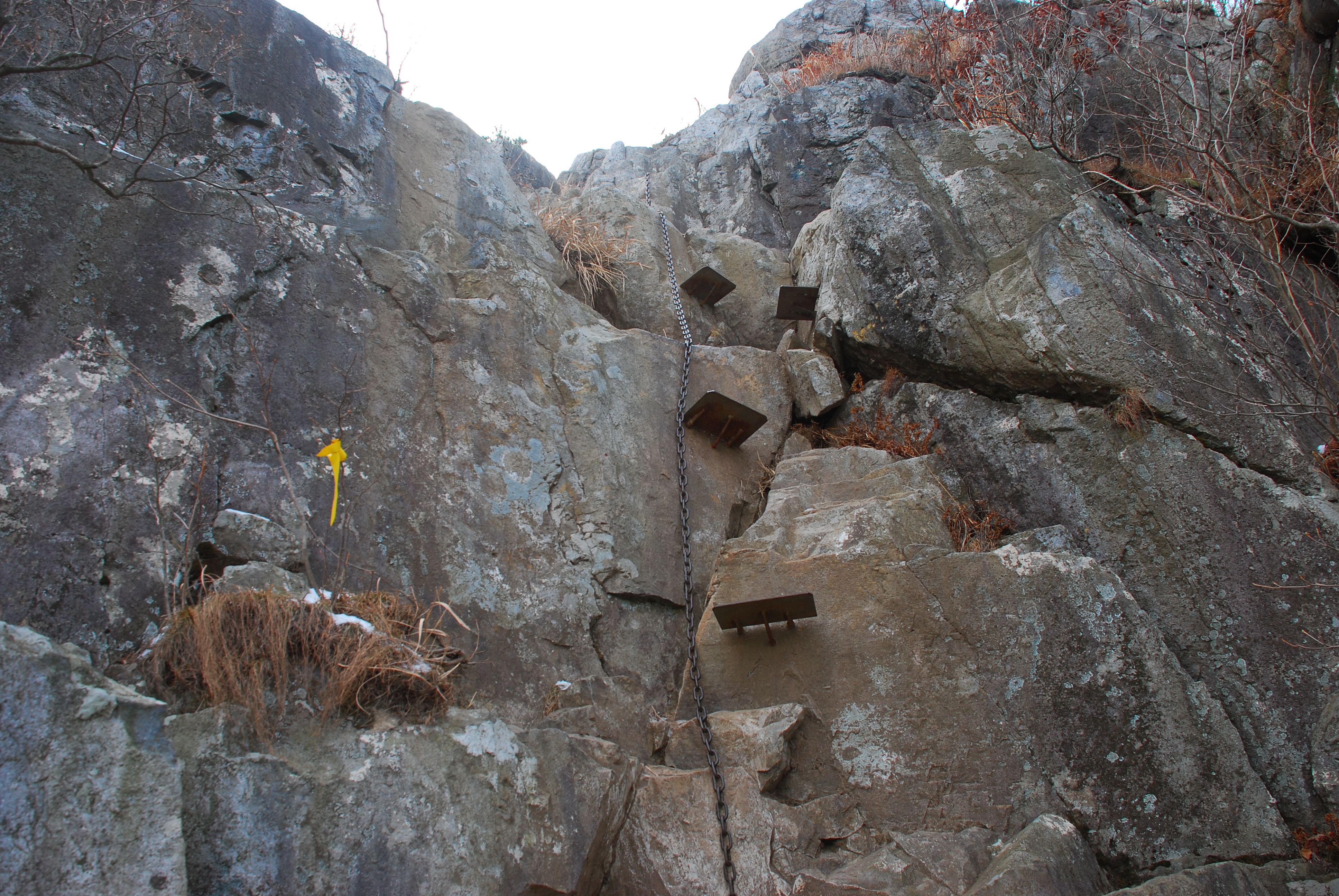 팔영산은 거의 직벽 암봉으로 이뤄져 있어 위험 구간이 상당히 많다. 철 사다리나 쇠줄, 또는 공원에서 설치한 안전 지지대를 타고 올라야 한다. 이제 국립공원이 되었으니 안전 시설이 더 보충 될 것이라 여겨 진다.