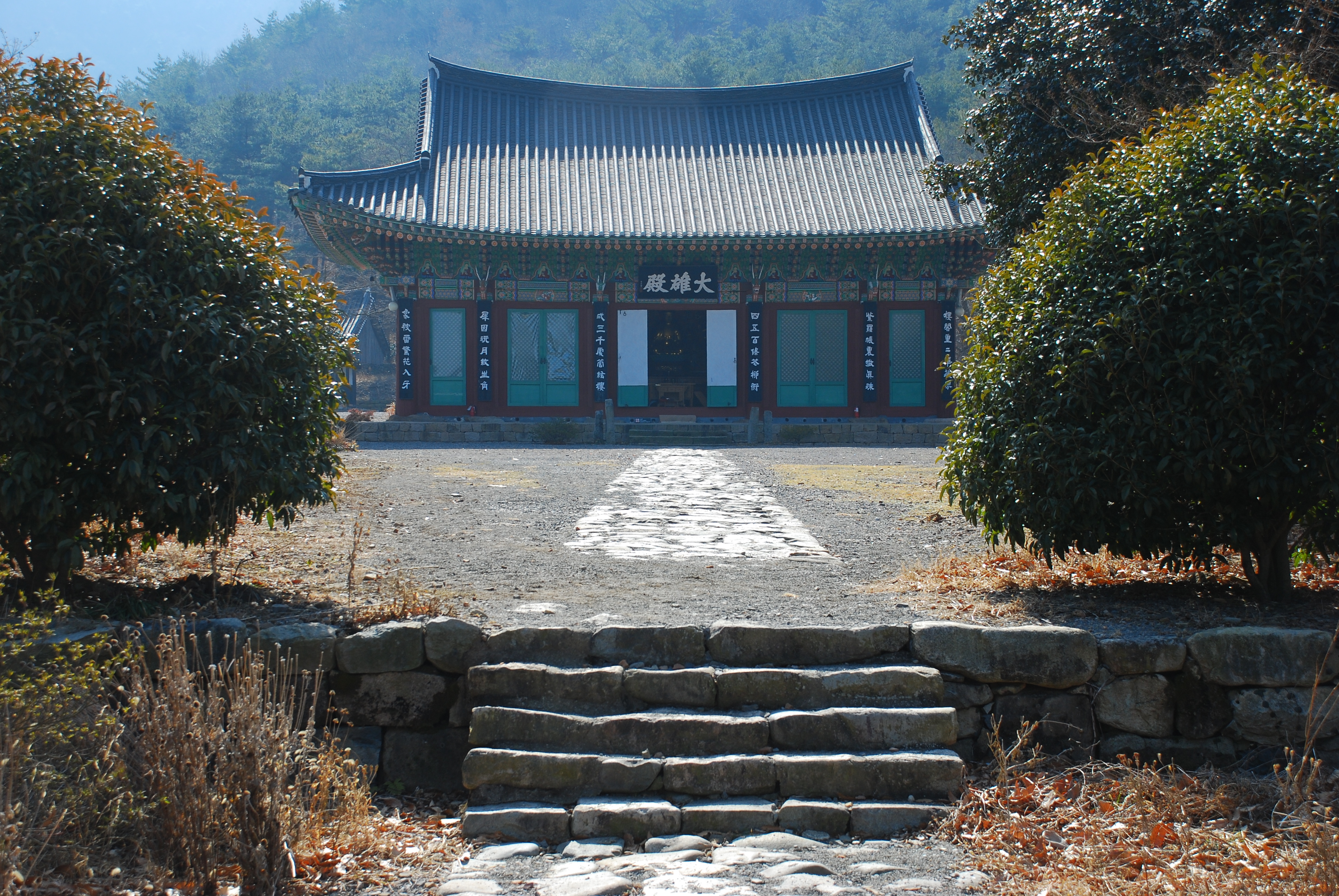 별다른 사찰 건물이 없으니 이리저리 둘러 볼 곳도 없고 다만 대웅전 건물은 팔작지붕으로 맵시가 돋보이고 배흘림 기둥으로 되어 있는 북향의 5칸 건물이다. 위낙에 보존 상태가 좋아 지나는 스님께 물어 보니 이도 최근에 해체하여 보수하였다 한다. 멀리 뒤로 팔영산의 봉우리가 보인다.