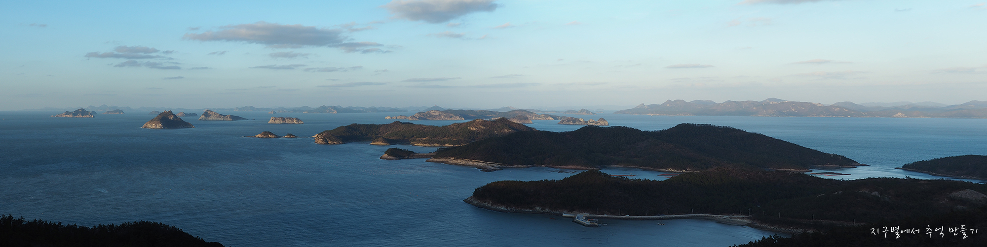 여미항에서 도리산 전망대로 올라가면서 찍은 서북쪽 파노라마.