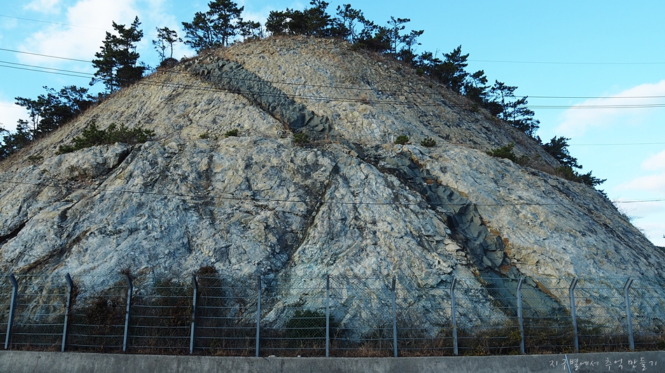 지층이 묘하게 생긴 절개면이 있어 잠시 서서 구경도 하구요.