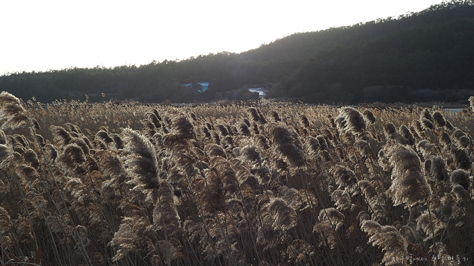 오후 햇살에 바닷가 반짝이는 갈대 풍경이 보기 좋습니다.
