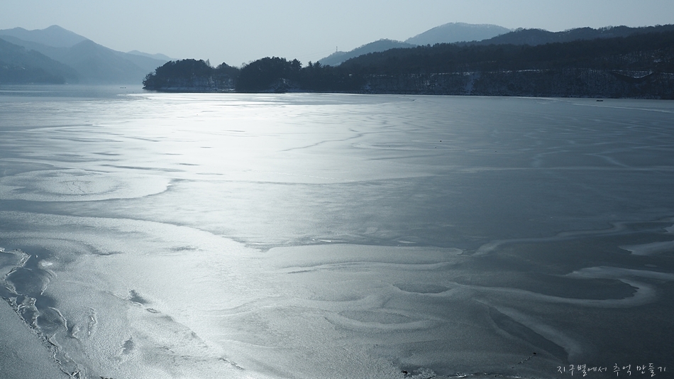 호수는 근간의 추위로 꽁꽁 얼어 붙었네요.