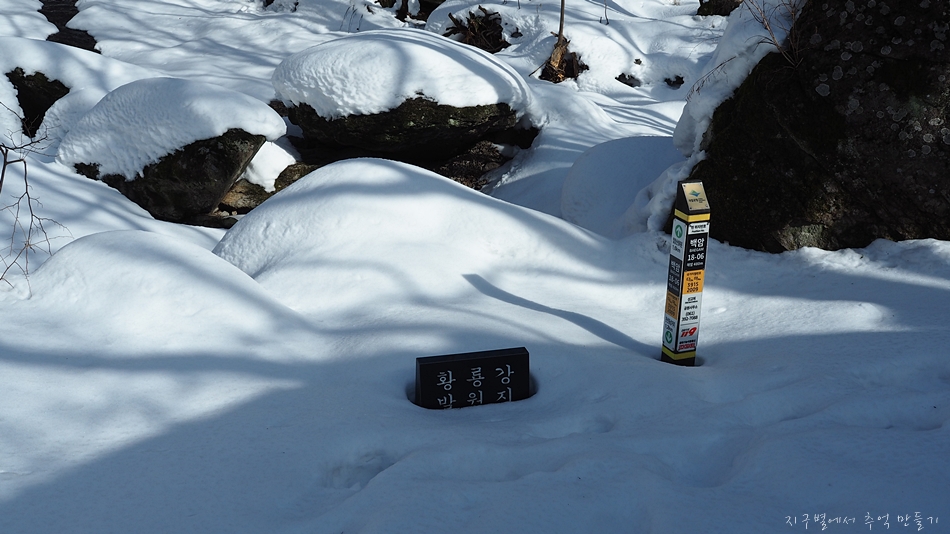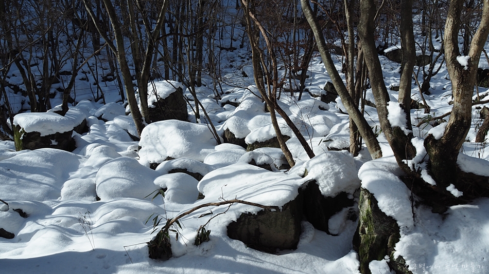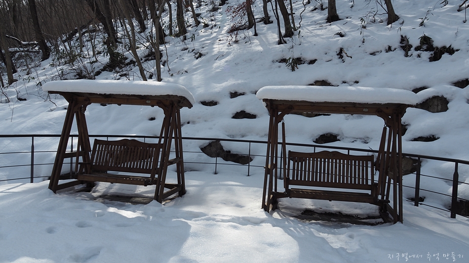 천천히 내려오면서 계곡이 쌓인 눈 풍경도 감상하고 눈사람도 만들고...