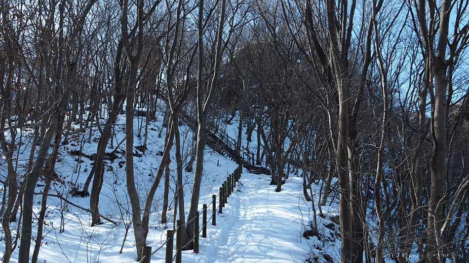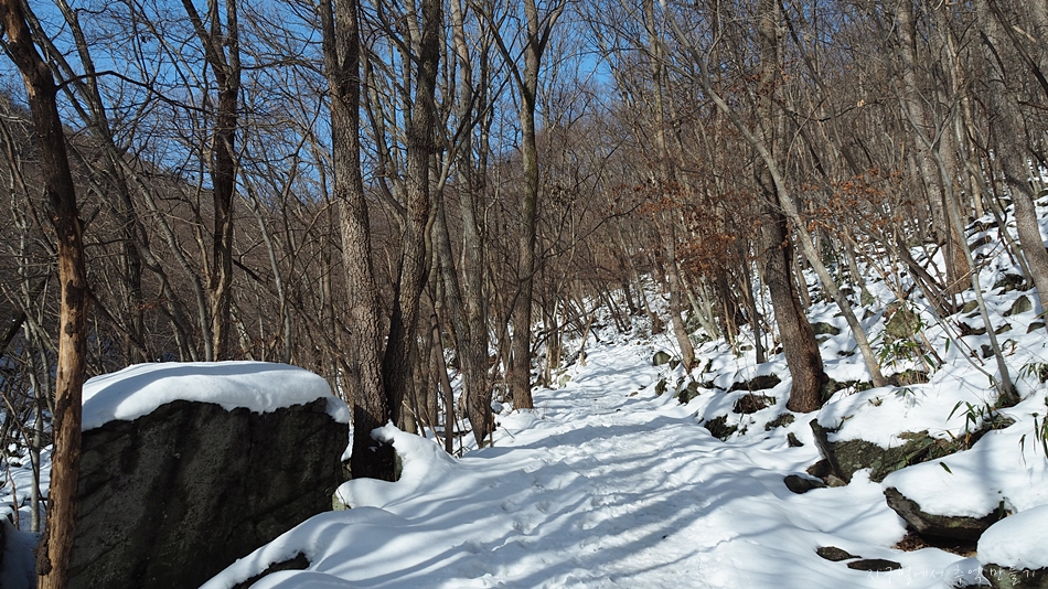 등산로와 100m정도 벗어나 있는데 다녀간 발자국이 없어 눈을 헤치고 올라가 봅니다.