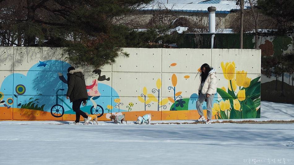 포근한 날씨에 귀여운 반려가족들과 소풍을 나왔네요.