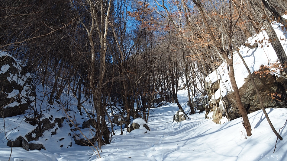 반 정도는 계곡길이고 나머지 반 정도는 경사가 심한 비탈길입니다.