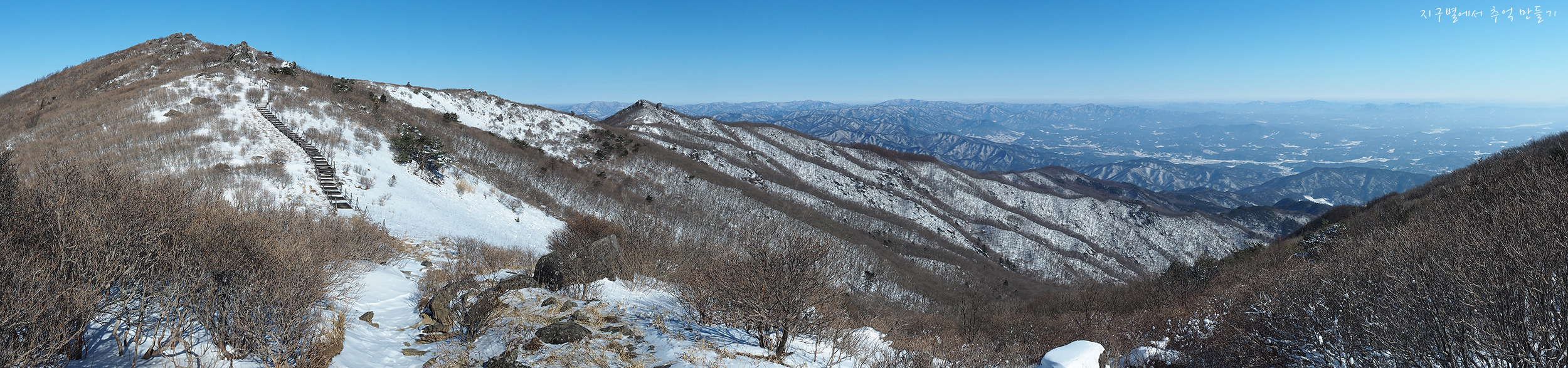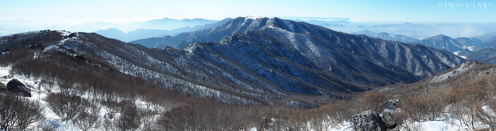 좌측 국망봉 정상과 중앙 소백 주능선 풍경의 파노라마.