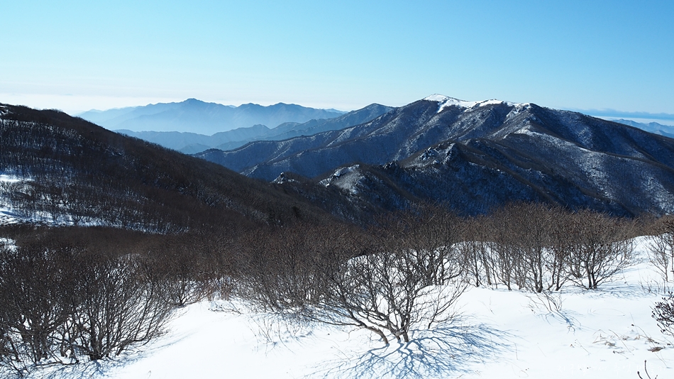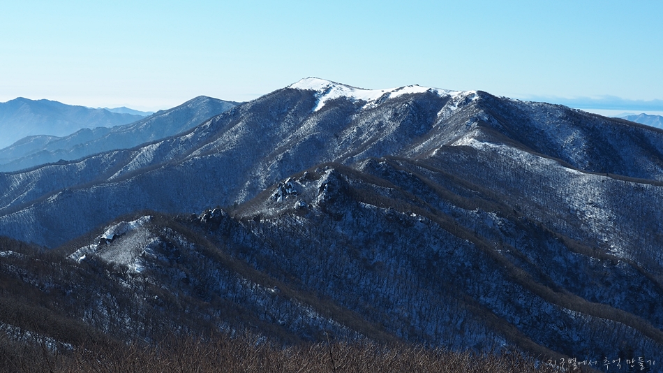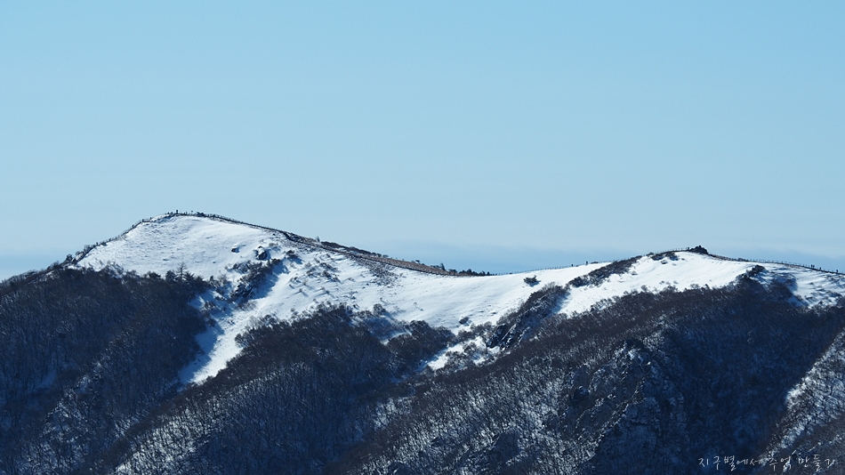 비로봉이 하얀눈을 뒤집어 쓰고 있는 모습을 보고 싶었는데 오늘은 만점은 아니지만 그래도 꽤 멋진 모습입니다.