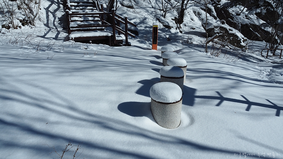 돌벤치 눈을 치워내고 앉아서 잠시 휴식.
