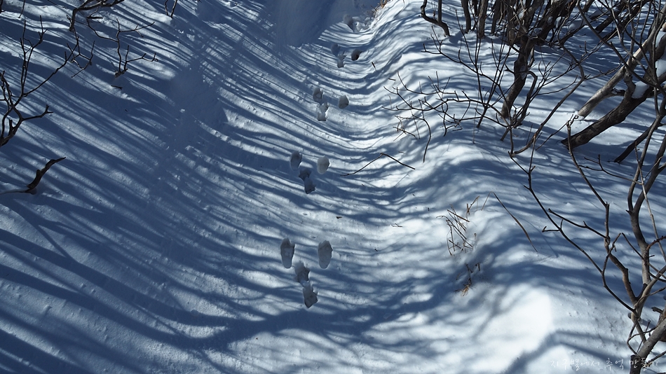 먼저 올라간 발자국이 있길래 당연히 국립공원 직원이 길을 틔여 놓았다고 생각했지요.