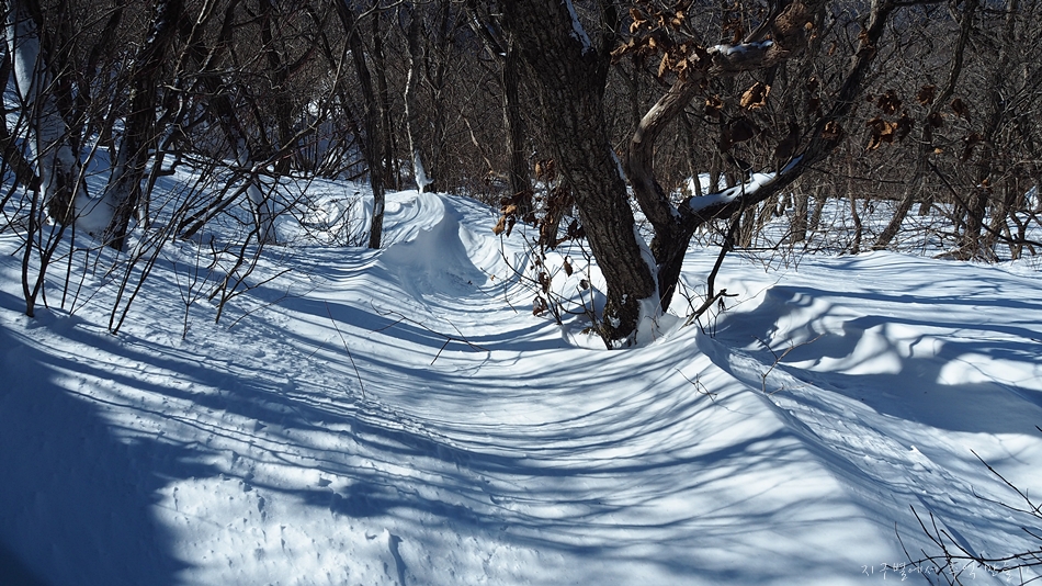 무릅까지 푹 푹 빠지는 눈길이 오히려 즐겁습니다.