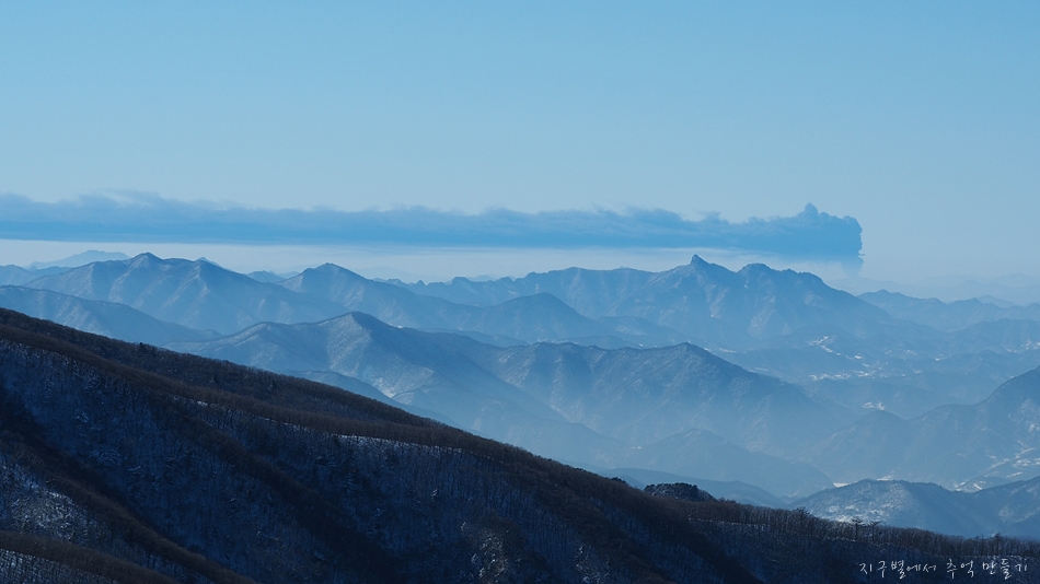 온 하늘이 맑고 깨끗한데 월악산 위에만 용구름이 가로로 자리하고 있는 ..