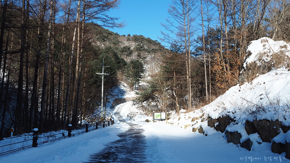 초암사까지 올라가는 도로는 제설이 되어 있습니다.