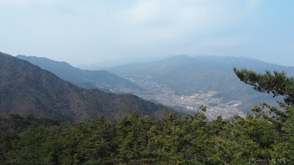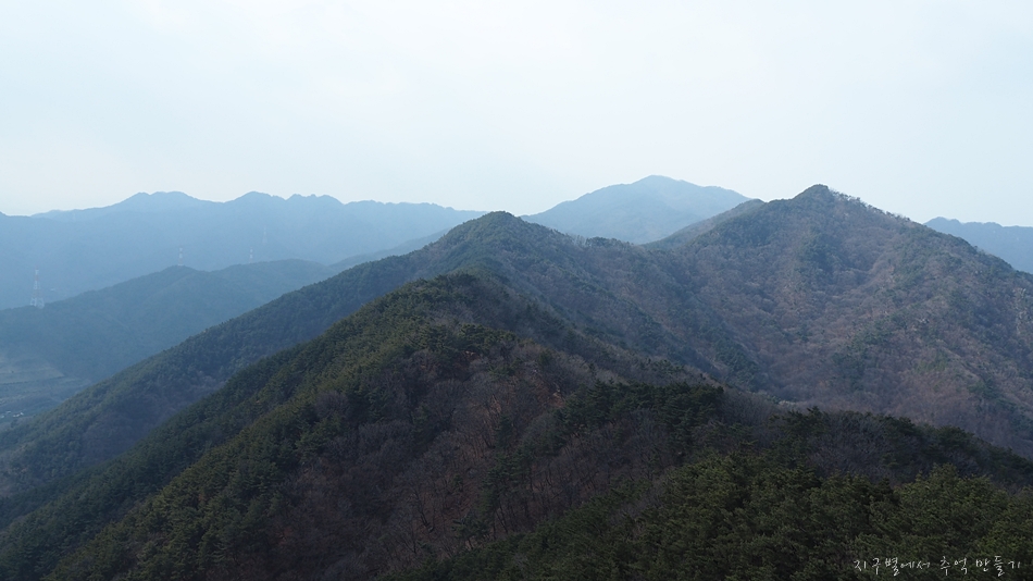 우측으로는 팔공산이 조망 되는데 미세먼지로 꽝입니다.