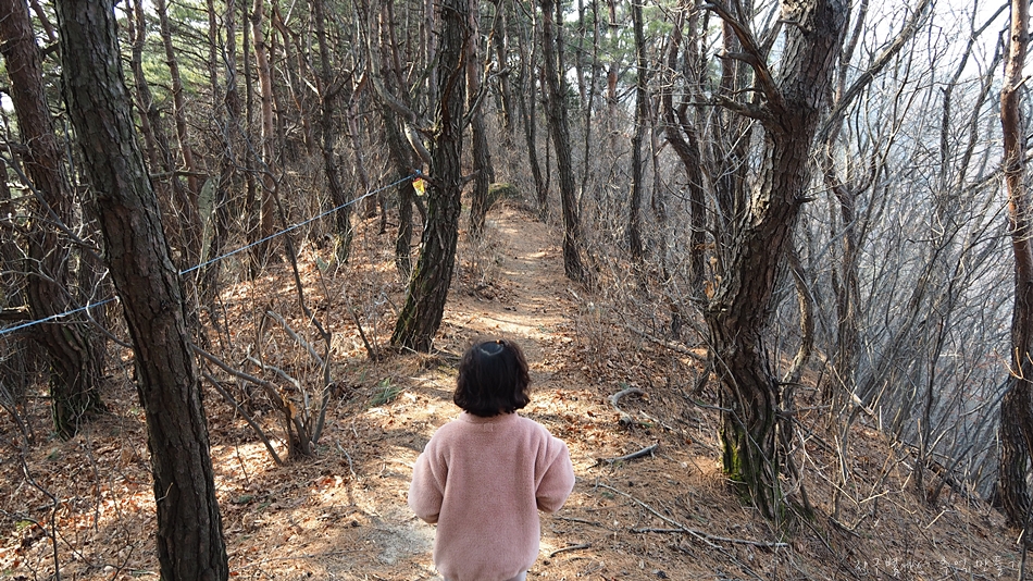이곳에서 우측으로 희미하게 내려가는 길이 보이길래 아이와 함께 하산을 하였답니다.