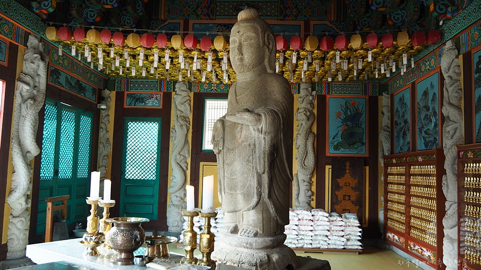 보궁 옆의 약사보전내에 있는 서 있는 돌부처입니다.