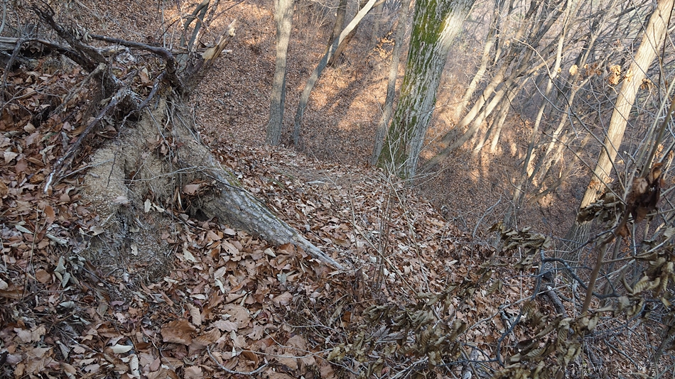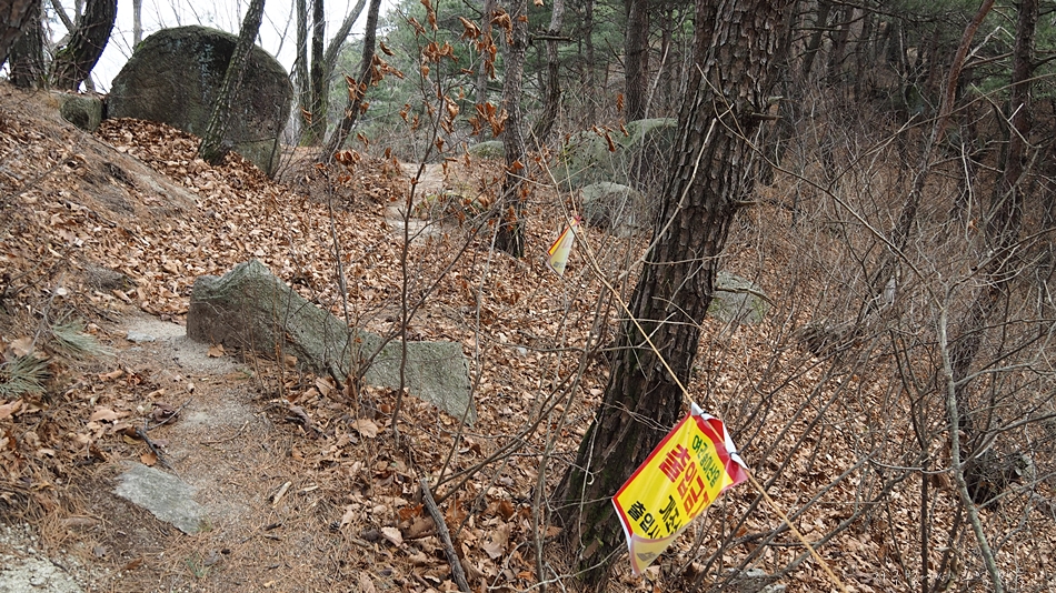 아중에 다 내려와서 보니 이곳 구간은 개인소유로 입산이 금지되어 있는 곳이었답니다.