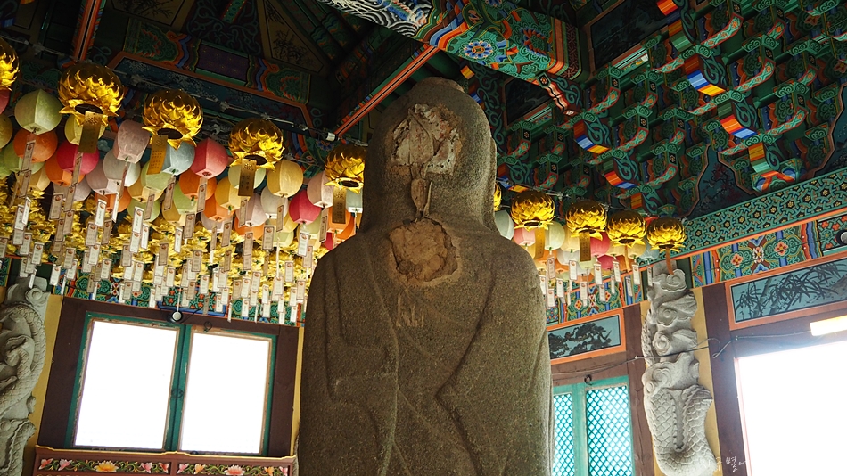 얼굴은 훼손이 심하여 이목구비는 새로 조각을 한 것입니다.