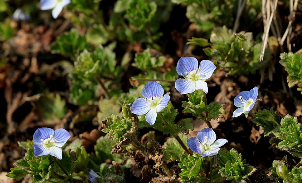 논둑길을 걷다 보니 벌써 봄까치꽃(개불알풀)이 여기저기 피었습니다.