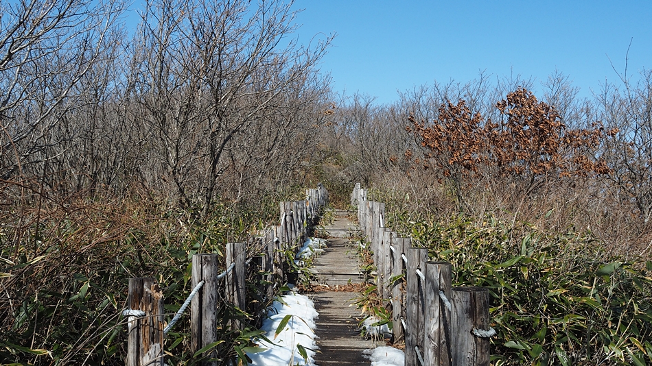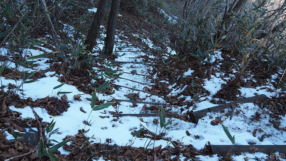 눈길 아래가 얼어있어 조심스러운 하산길입니다.