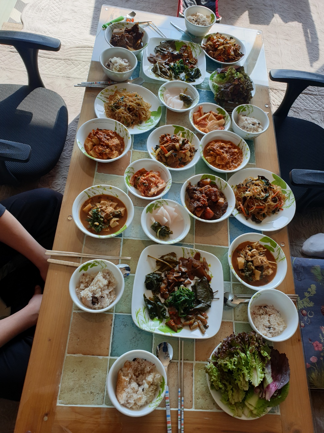부랴부랴 잡채 청국장 냉이된장국 쇠고기 찜 외 반찬을 저녁 늦도록 준비를 했습니다.