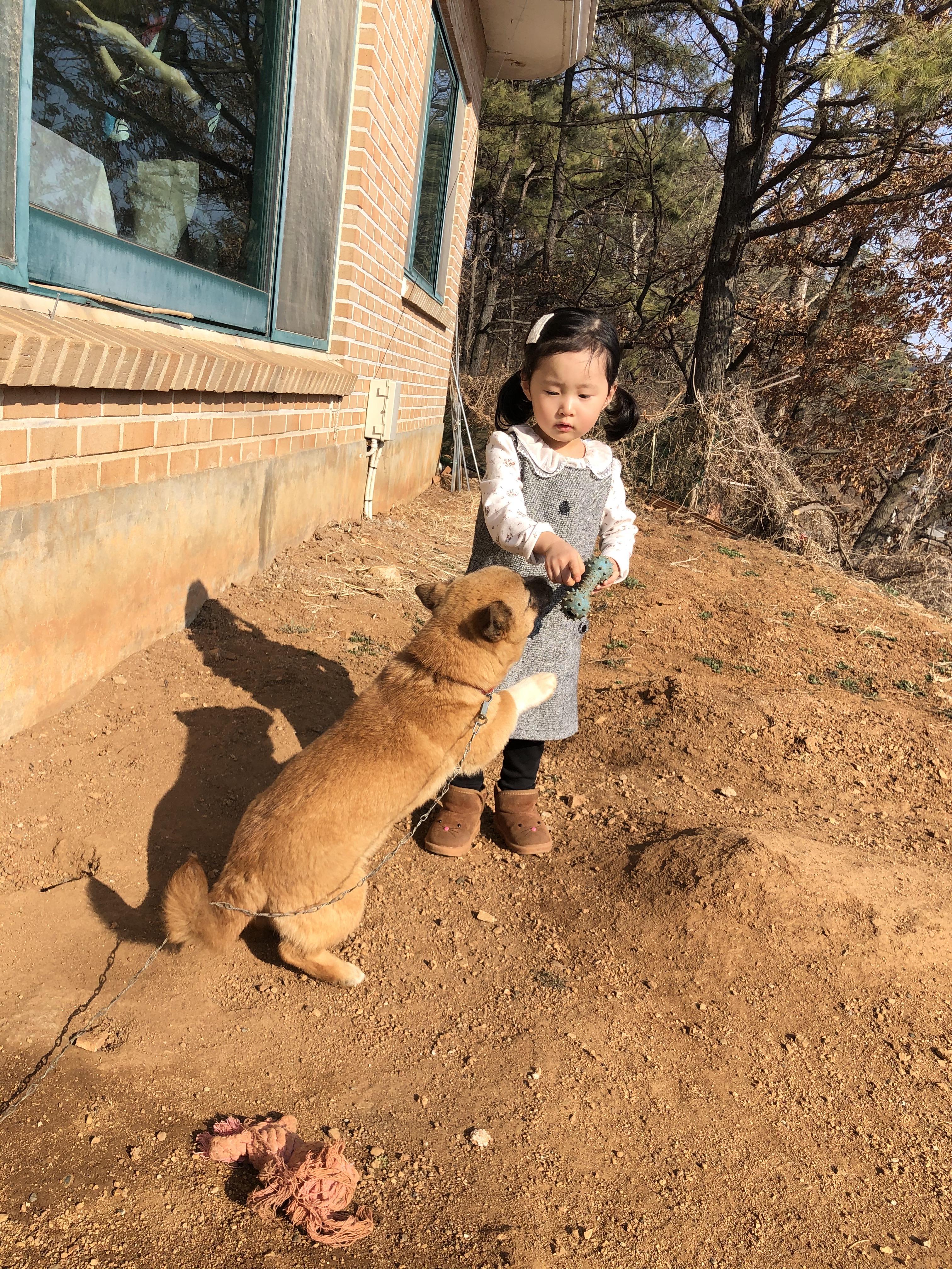 강아지를 전혀 안 무서워하는 공주님이 기특합니다.