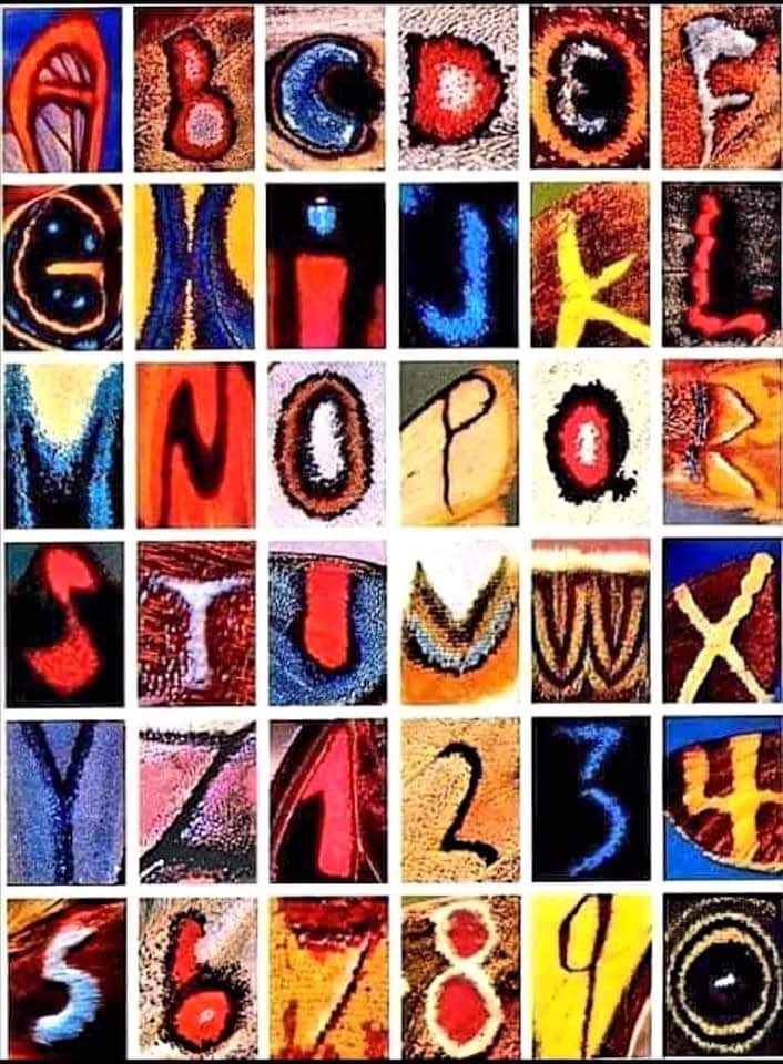노르웨이 사진작가 Kjell Sandved는 24년동안 나비 날개의 패턴을 촬영했는데, 알파벳의 모든 글자와 1에서 9까지의 숫자가 있는 날개를 찾아 촬영 했습니다.