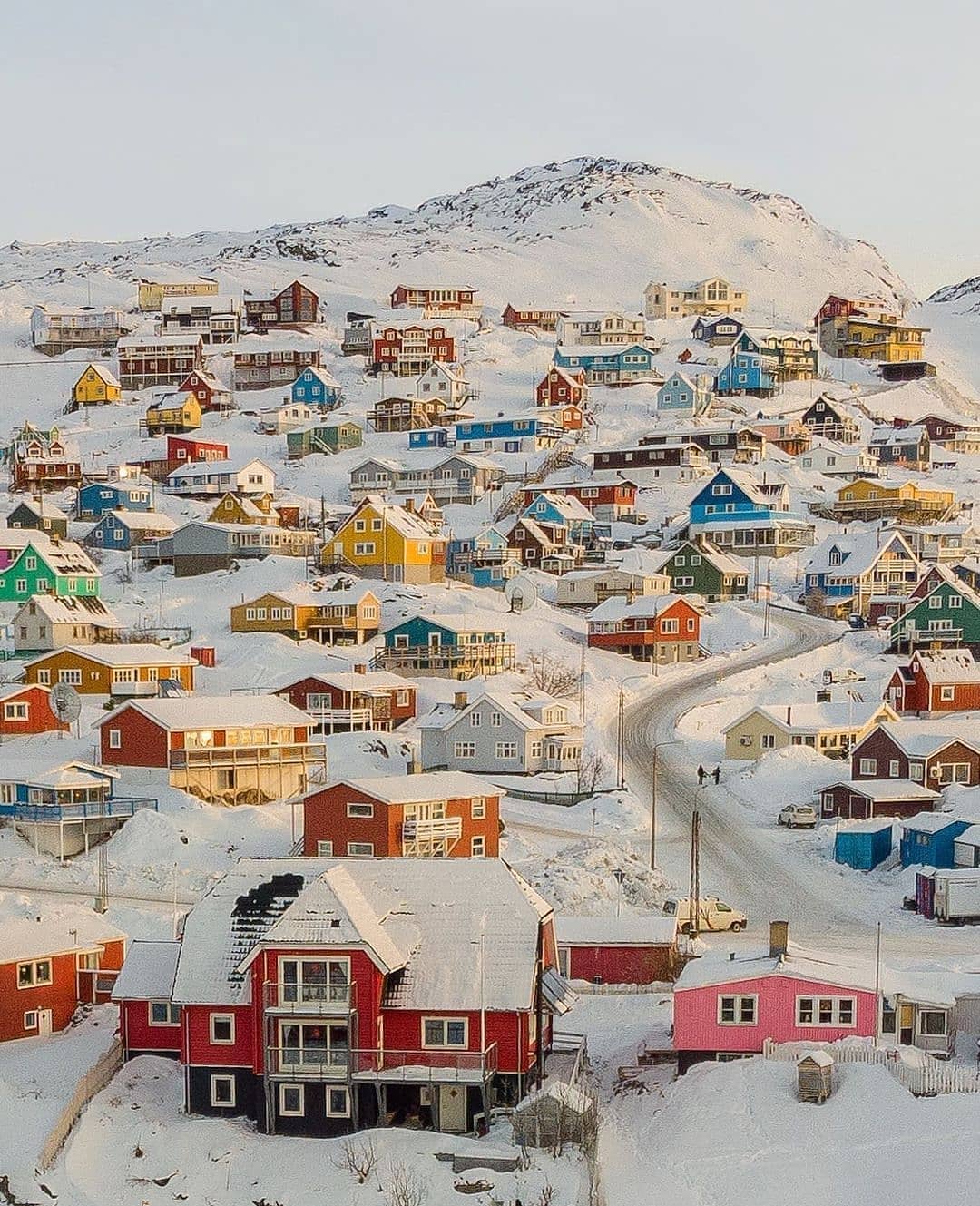 눈 내린 그린란드의 Qaqortoq 마을.
