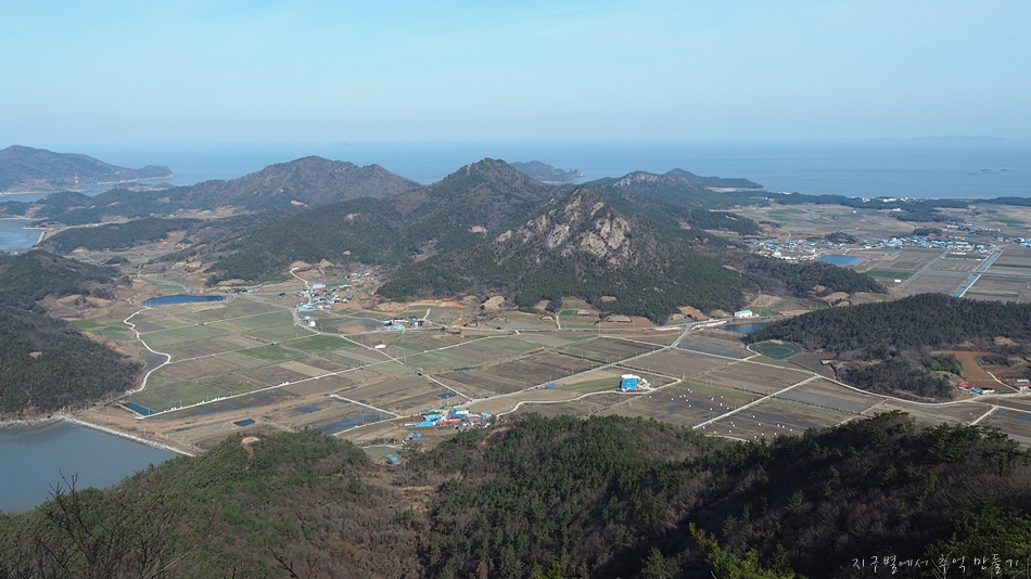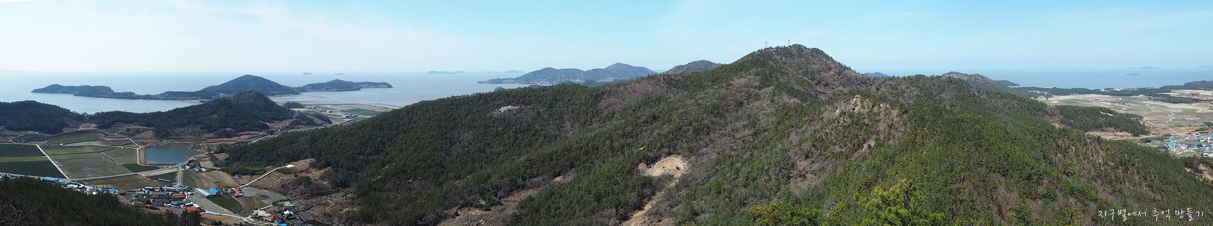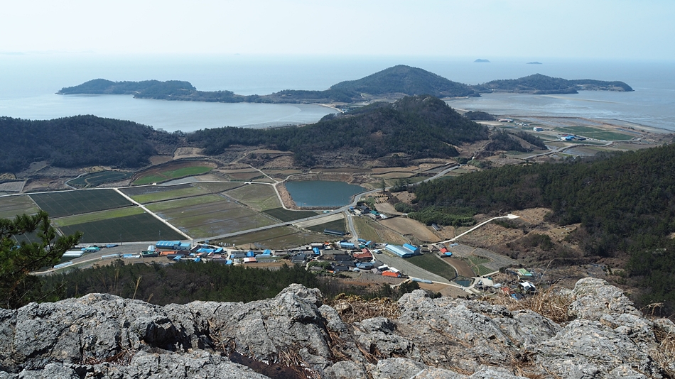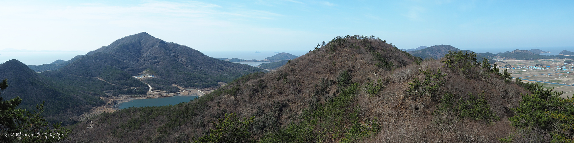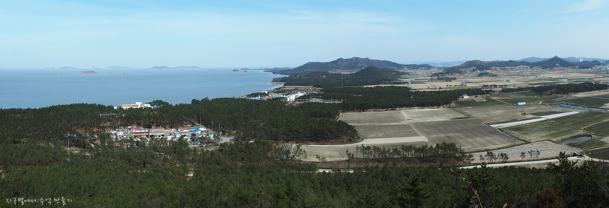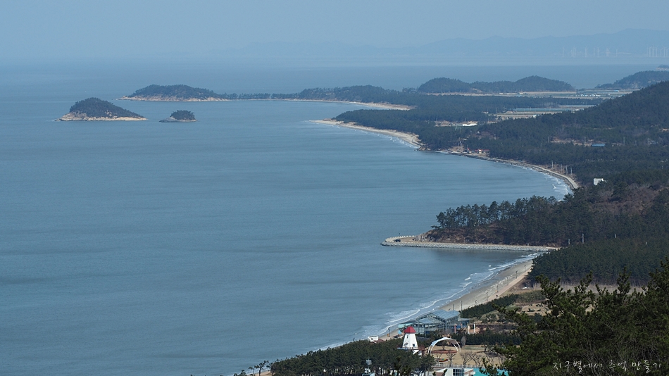 마주보는 방향으로는 함박산과 불갑산, 그리고 대광해수욕장 앞에 있는 벙산이 조망 됩니다.