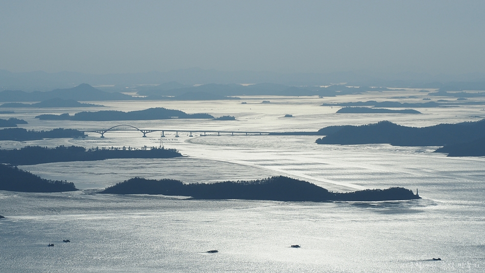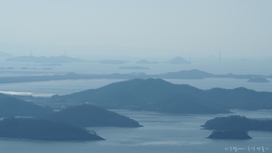 오른편에 희미하게 완공을 앞 둔 임자대교가 보이네요.