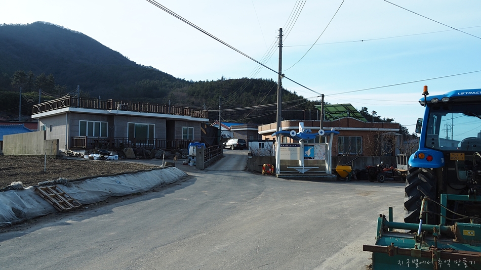 동네 맨 윗집 파란지붕 우측으로 돌아 올라가면 됩니다.