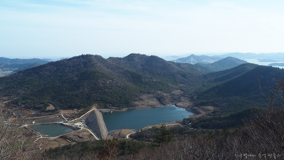산들이 빙 둘러 쌓여 있는 중간에 저수지가 만들어져 있어 물이 귀한 섬에서는 아주 최적 여건의 저수지입니다.
