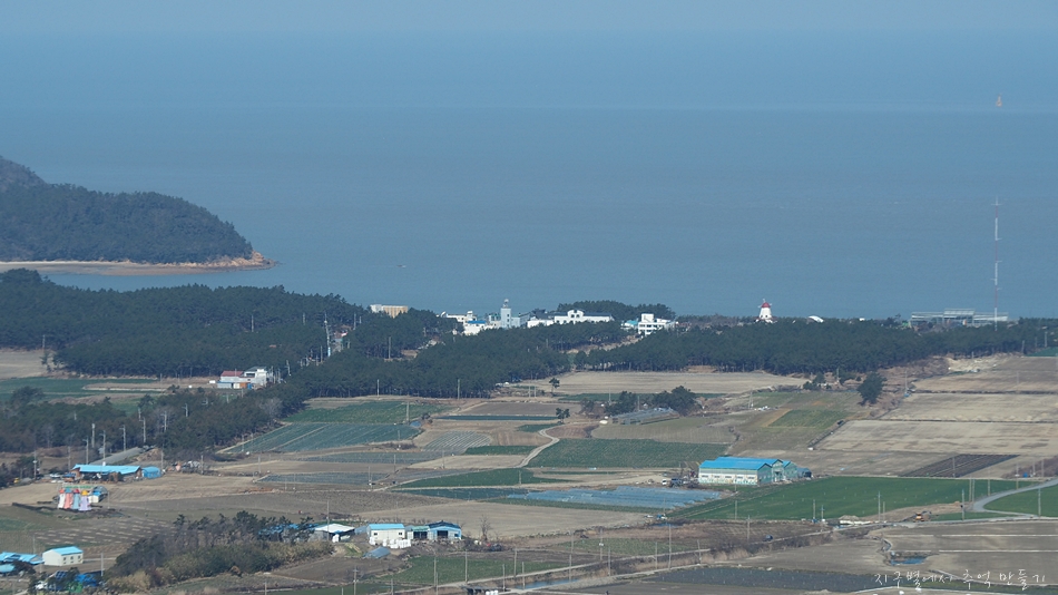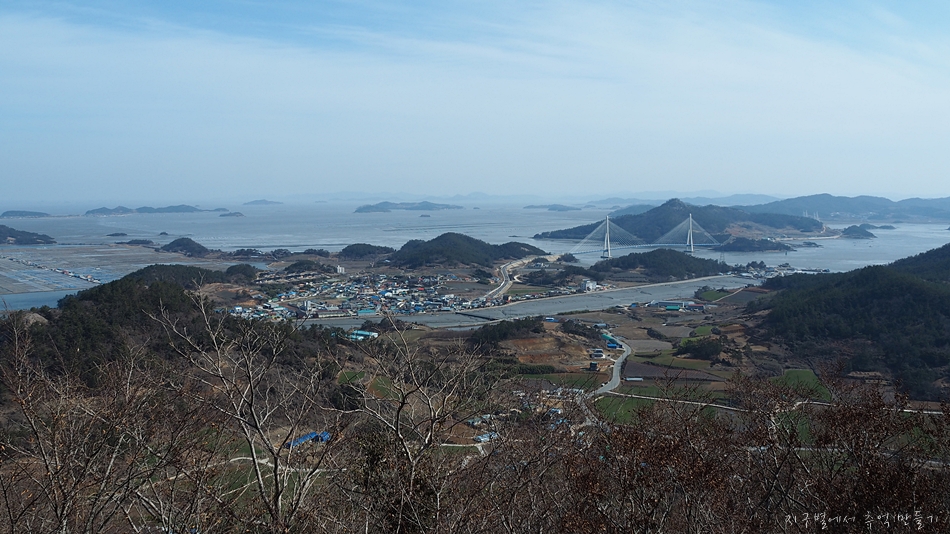 남쪽으로는 바로 앞 사옥도가 보이고 우측으로는 증도와 멀리 자은도, 암태도가 연결되어 보여 집니다.
