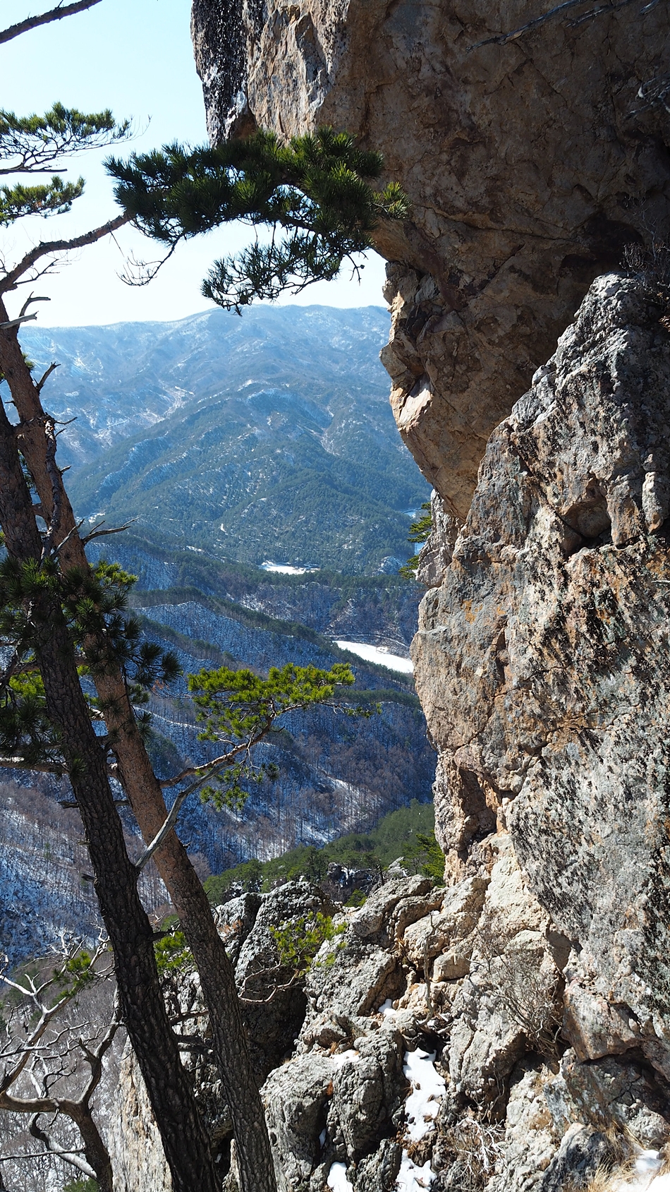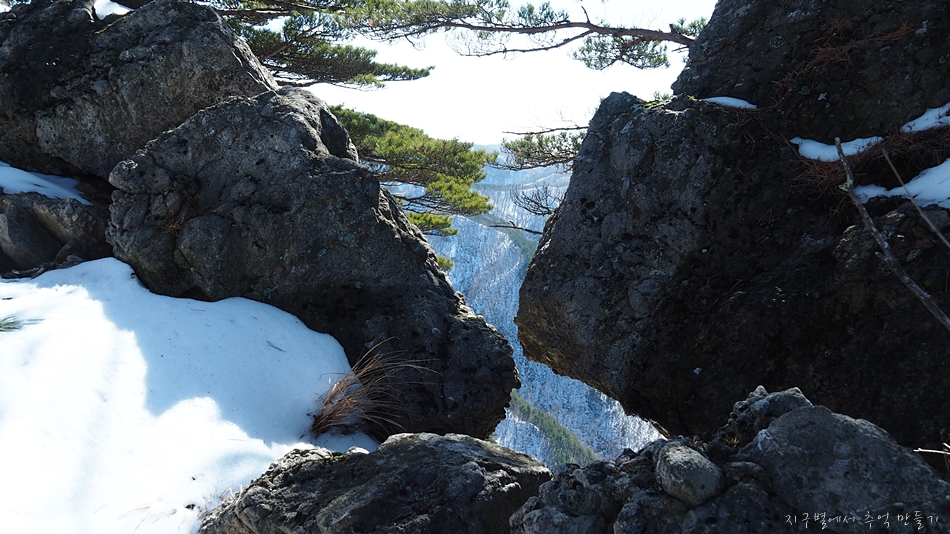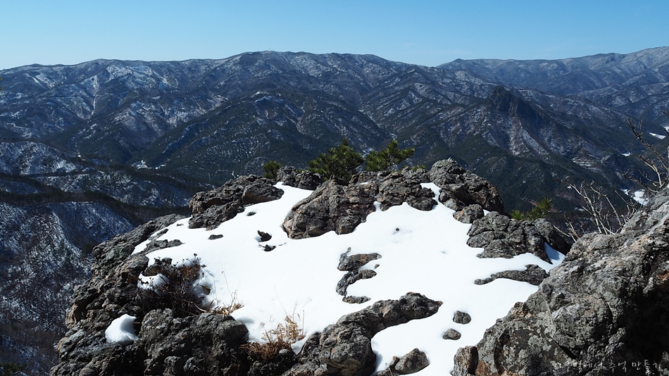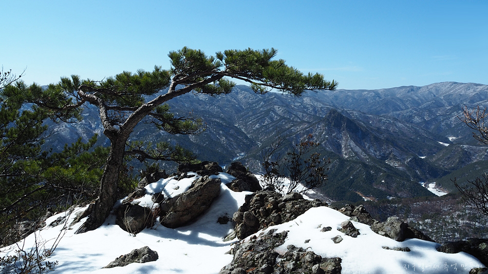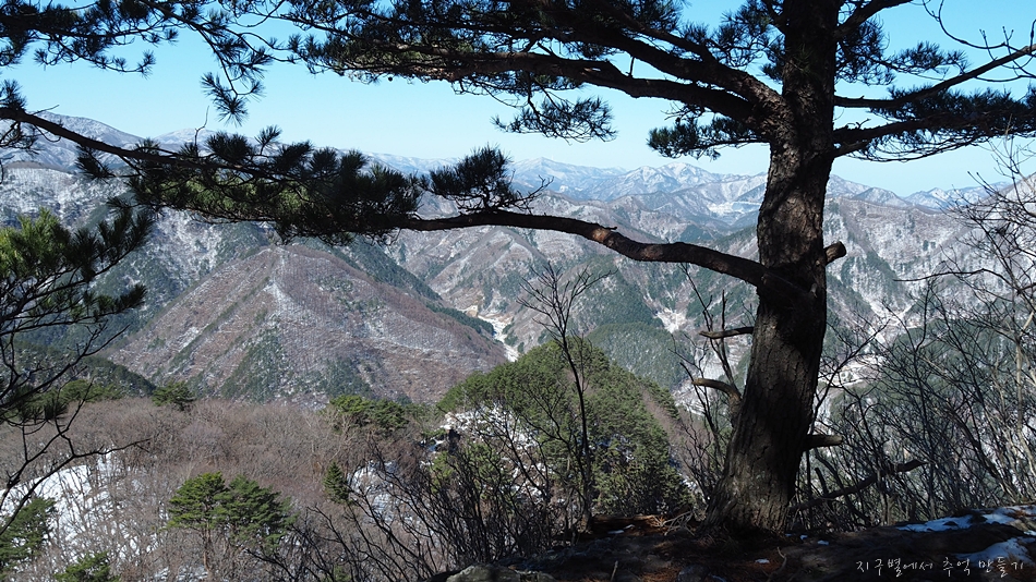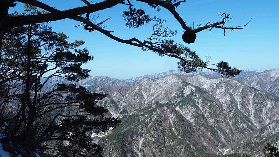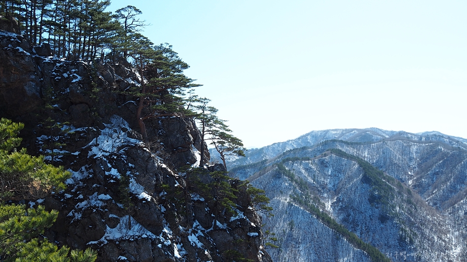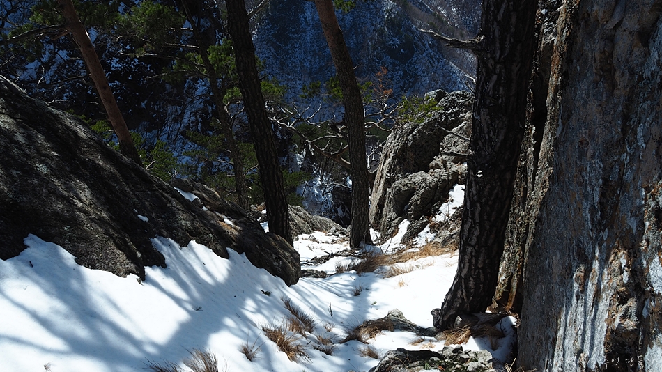 바로 옆 달바위봉 절벽에는 이 지역 명물 황장목이 풍경화를 연출하는데 다른 계절에서는 정말 멋진 동양화가 될것 같네요.