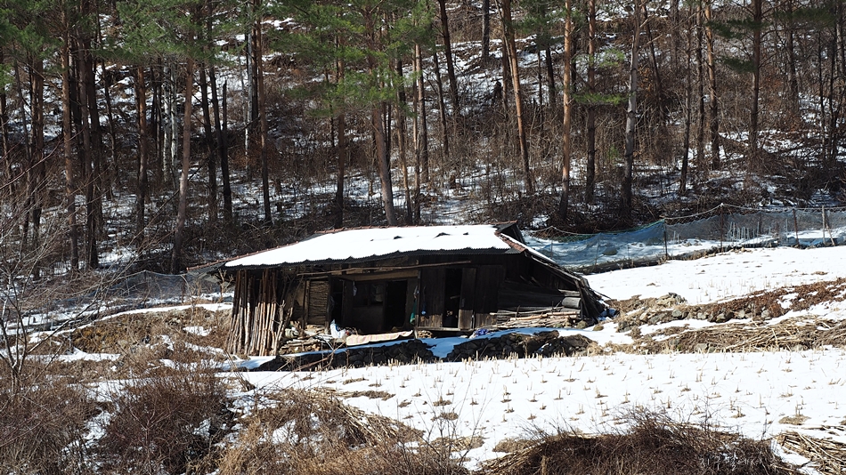 멀리서 보니 살림도구가 보이는데 사람은 살지 않는듯 합니다.