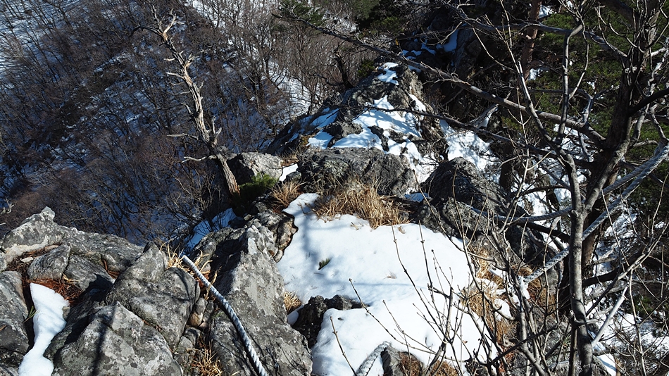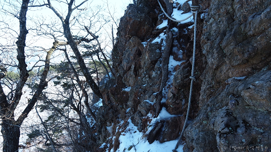 나무가지 잡고 밧줄 잡고 바위를 디뎌가며 겨우 겨우 한발한발 오릅니다.