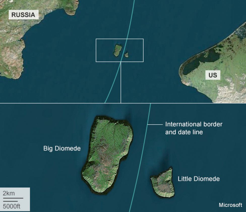 2. 3마일(약 5km) 미만 거리에 있는 다이메데제도는 21시간의 시차가 있습니다.