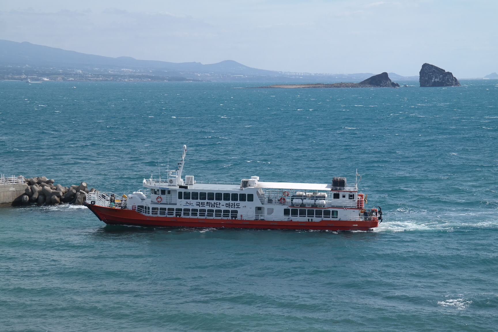고흥녹동항에서 오전 9시 출항 낮 1시 제주항 입항(예정된 시간은 3시간30분)