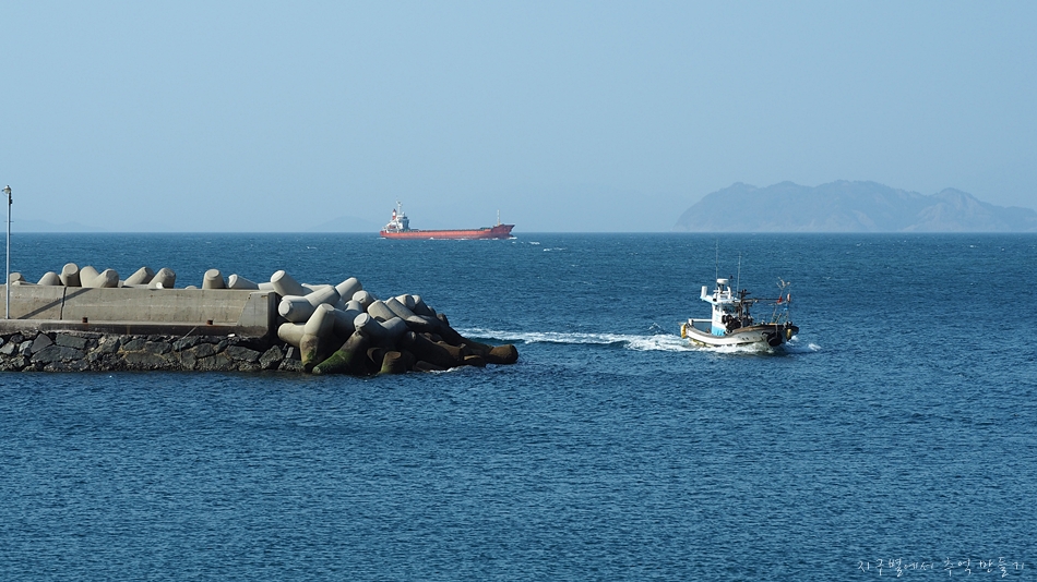 두미도 앞 바다는 뱃길 항로인듯.