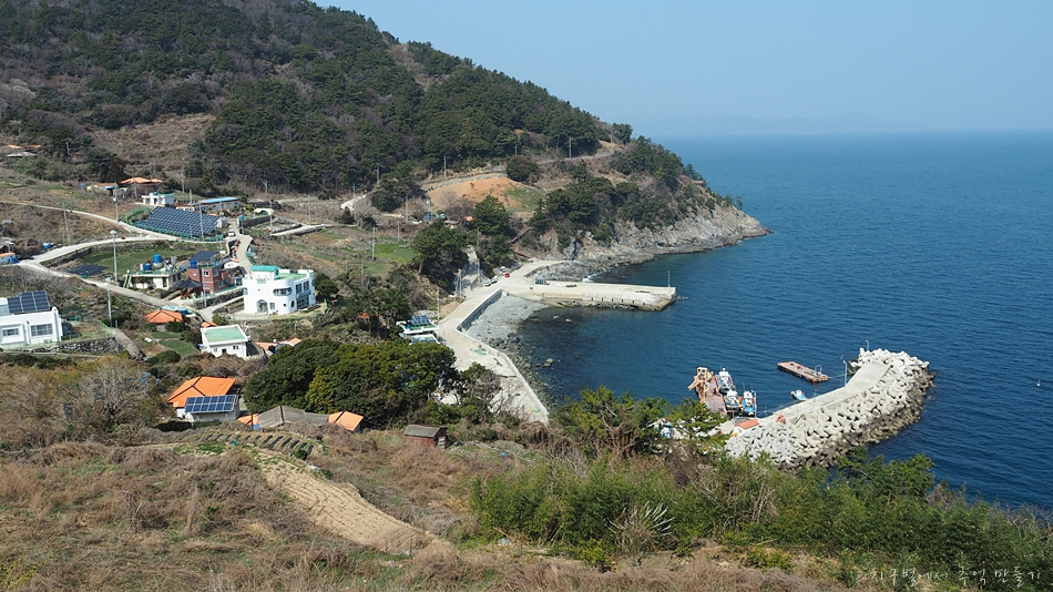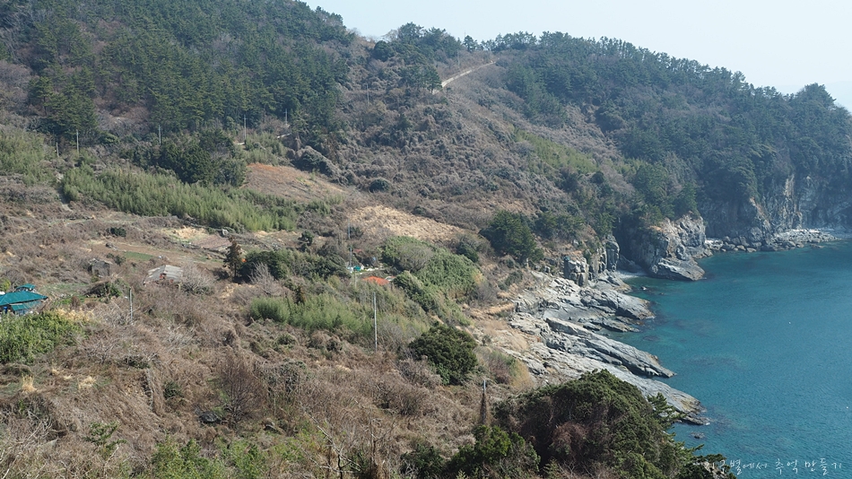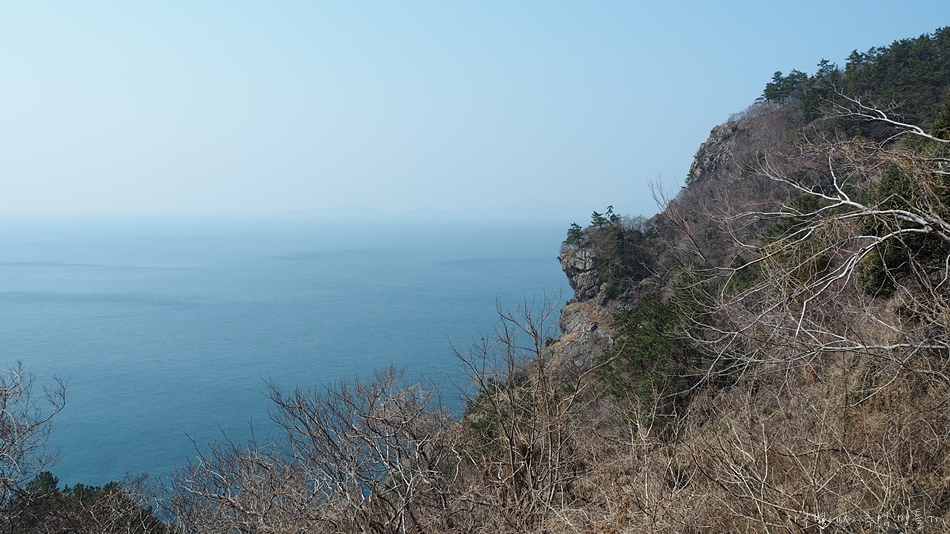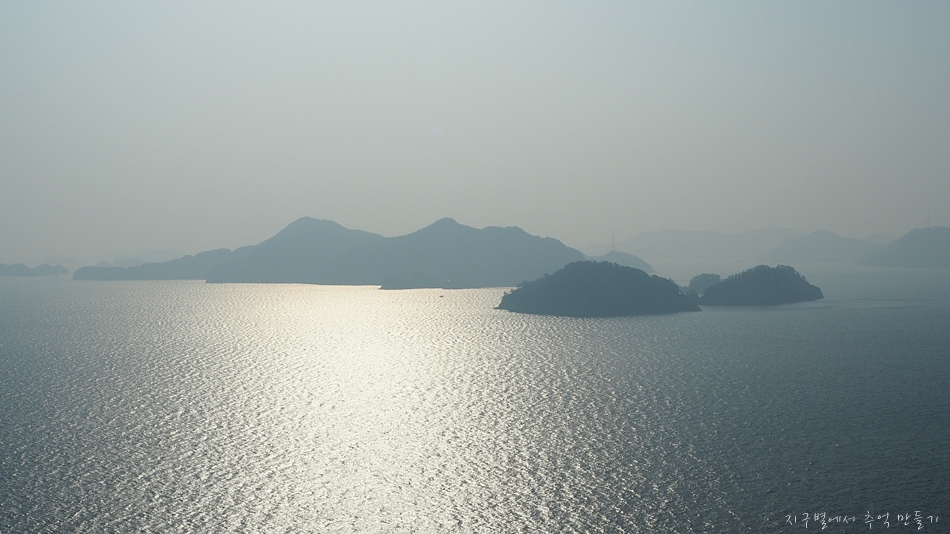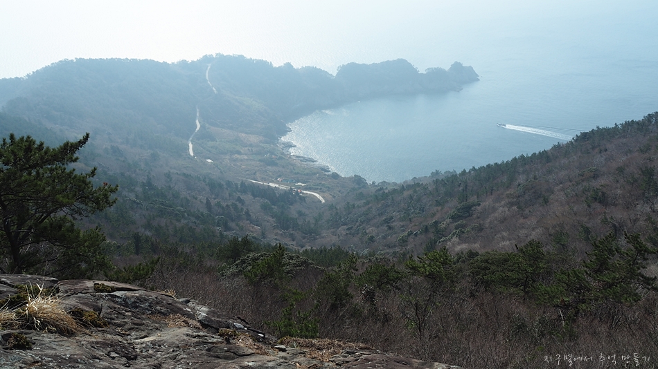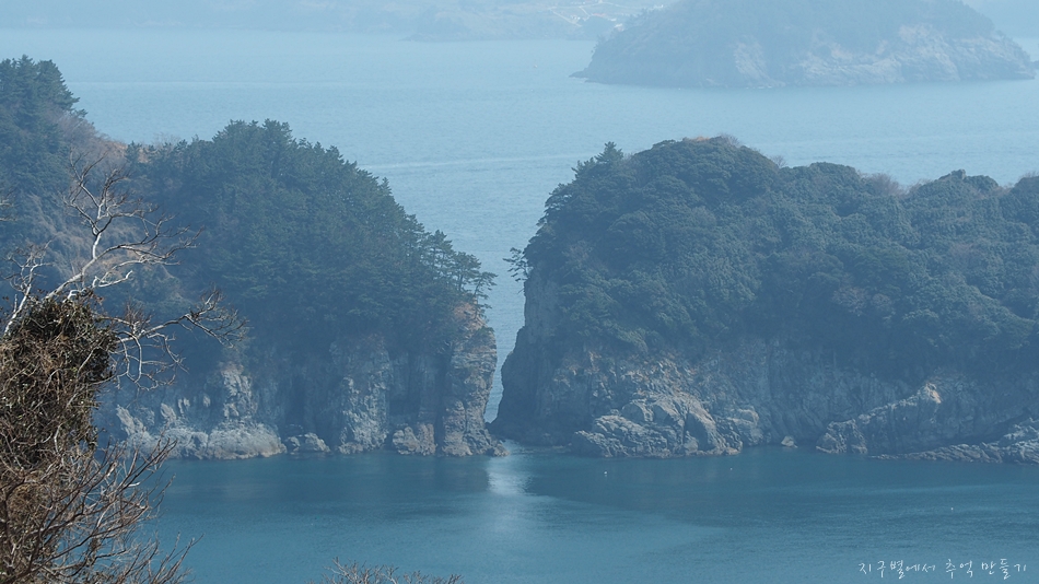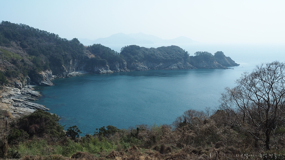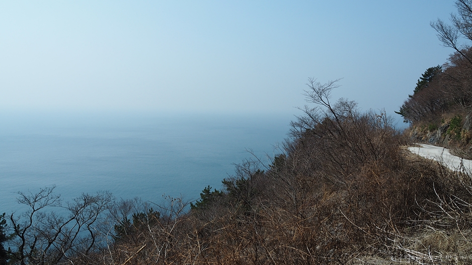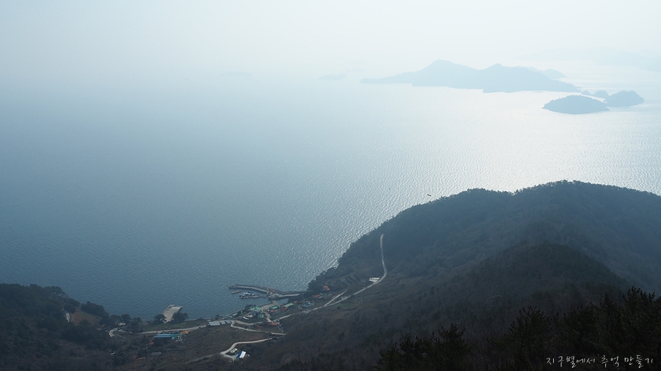 주변에 섬이 노대도와 욕지도가 있지만 남쪽으로는 탁 트여 시원한 바다 구경을 할 수 있는 곳인데 이날은 미세먼지가 있어 아쉬웠답니다.