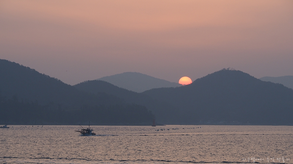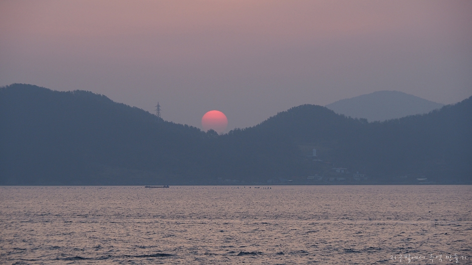 나가는 배 위에서 일출을 맞았습니다.