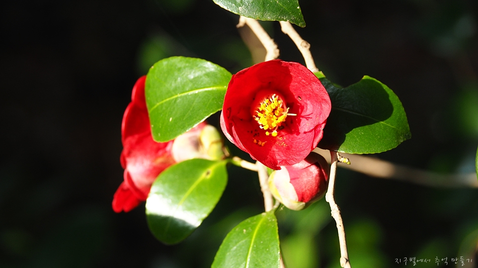 동백이 지천입니다.
