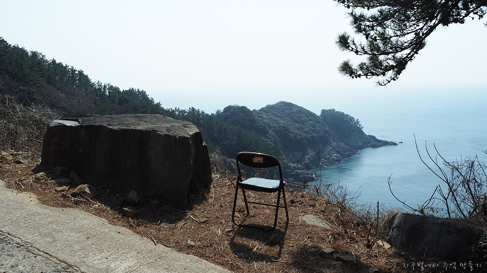 두미도 종주도로에는 간간 이렇게 의자가 바다쪽으로 향해 있는게 보이는데 아마도 여행객을 위한 섬 주민의 따스한 배려 같기도 하고...