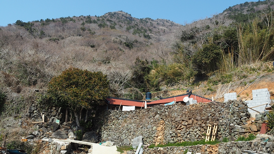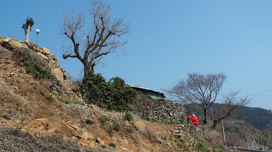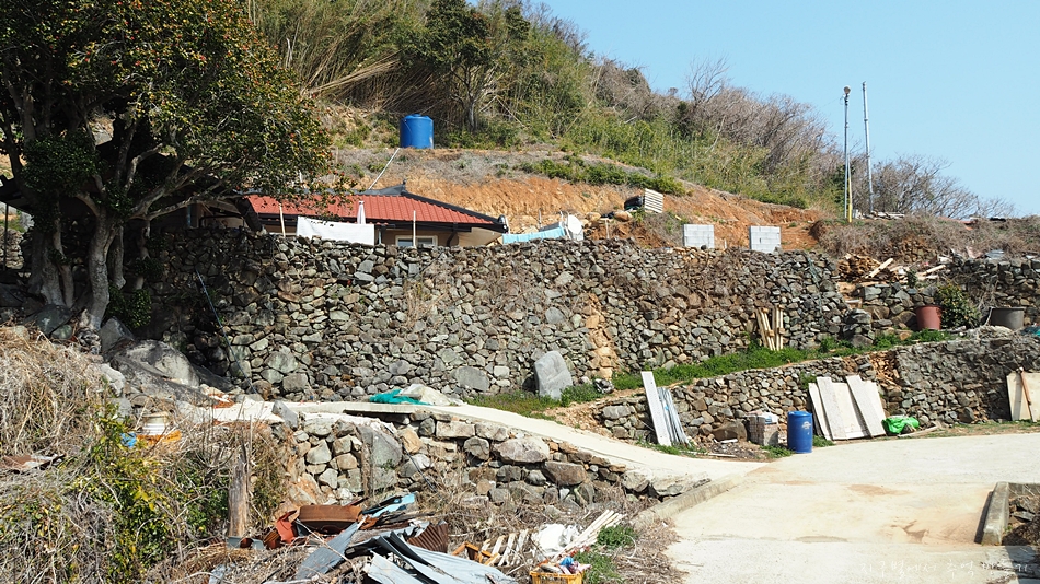 도로옆 산비탈 곳곳에는 이런 돌담들이 자주 보이는데 아마도 이전, 오래 전 섬 주민들이 작은 밭이나 집을 일구며 살았던 자리가 아닐까 생각됩니다.