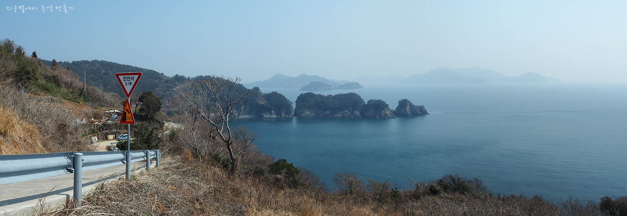 미세먼지로 이곳에서는 별로인데 나중에 내려가서 남부일주도로를 걸으면서 만나는 동메섬은 완전 환상.